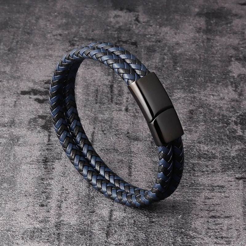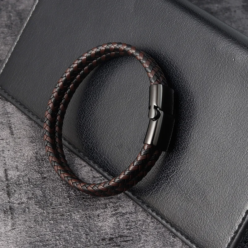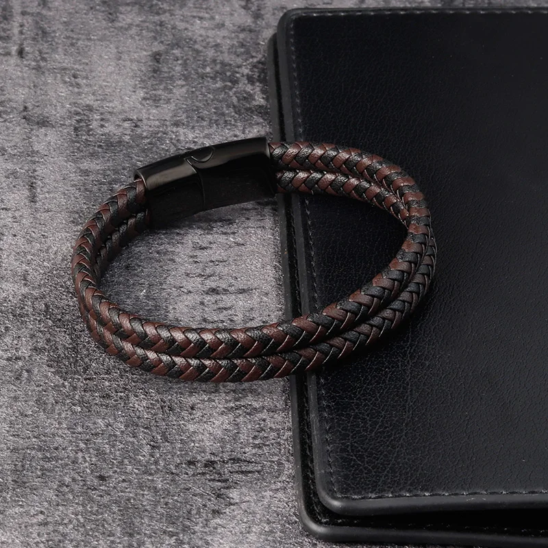 Браслет мужской из натуральной кожи, модное Ювелирное Украшение в стиле панк, с магнитной застежкой из шнура нержавеющей стали, коричневого и черного цветов