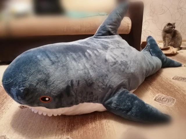 АКУЛА ПРОСТО НЕРЕАЛЬНАЯ!!!!!! ЕЩЁ И НА СКИДКУ ПОПАЛА! 140см +-3см, сложно было точно замерить) Пришла без набивки/внутренностей (новой почтой, только отправили не в тот город, сделала переадресацию), как куплю набивку/внутренности, добавлю фото✨
