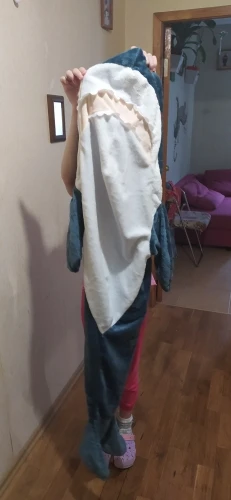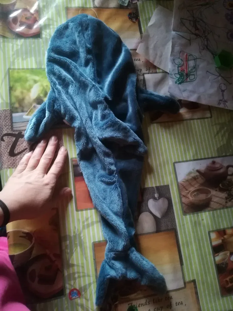 акула классная, ткань очень приятная. единственное что упустила, что она идёт без наполнителя. но не страшно, нашла старую подушку и наполнила. для 80см. хватило одной подушки халафайбера!