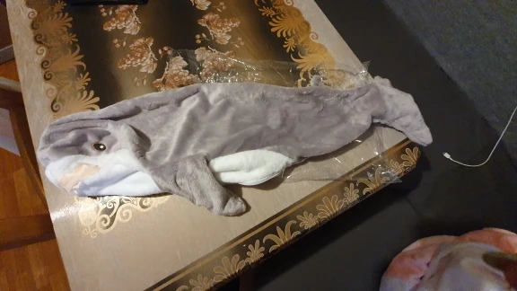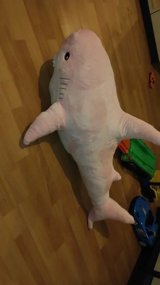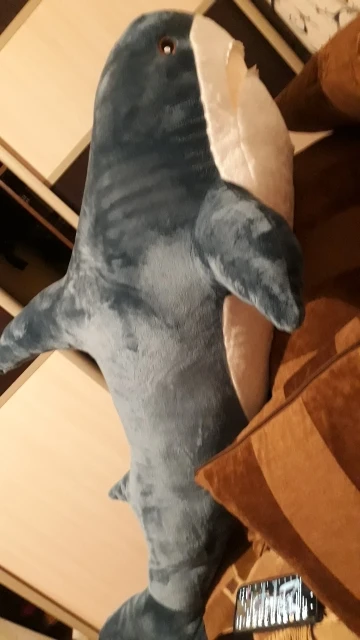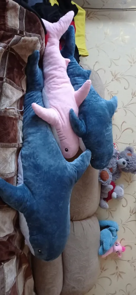 Всё хорошо, кроме того что акула пришла в виде мешочка с замочком,т.е набивать её я должна сама, что не указано. Хорошо что заказала на 60см, а если на 140?!