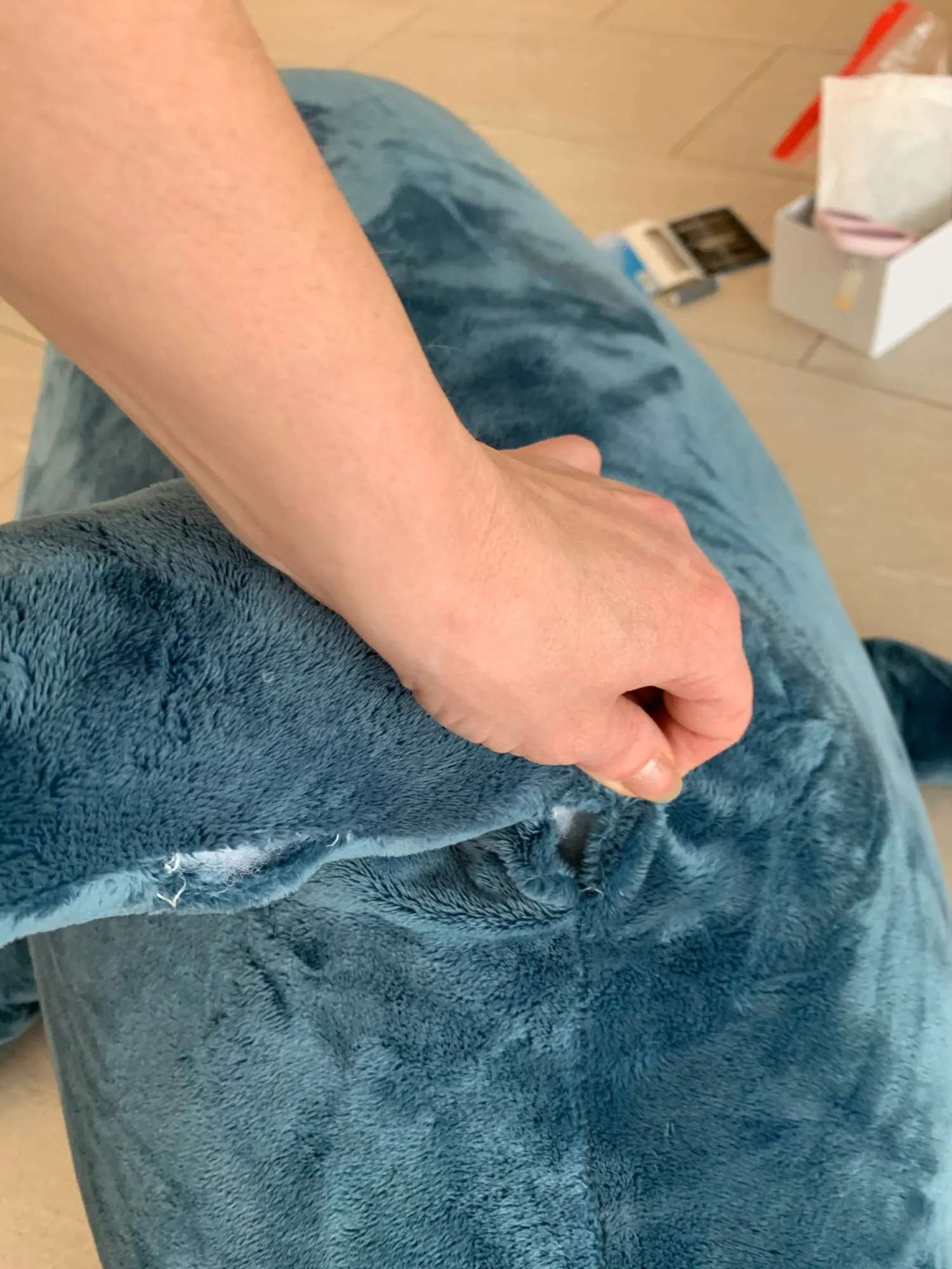 Материал средний, в некоторых местах была порвана. Так же не оказалось молнии, чтобы набить её и закрыть, пришлось зашивать.