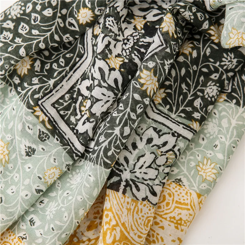 2020 Элитный бренд из хлопка и льна с принтом шарф для женщин солнц...