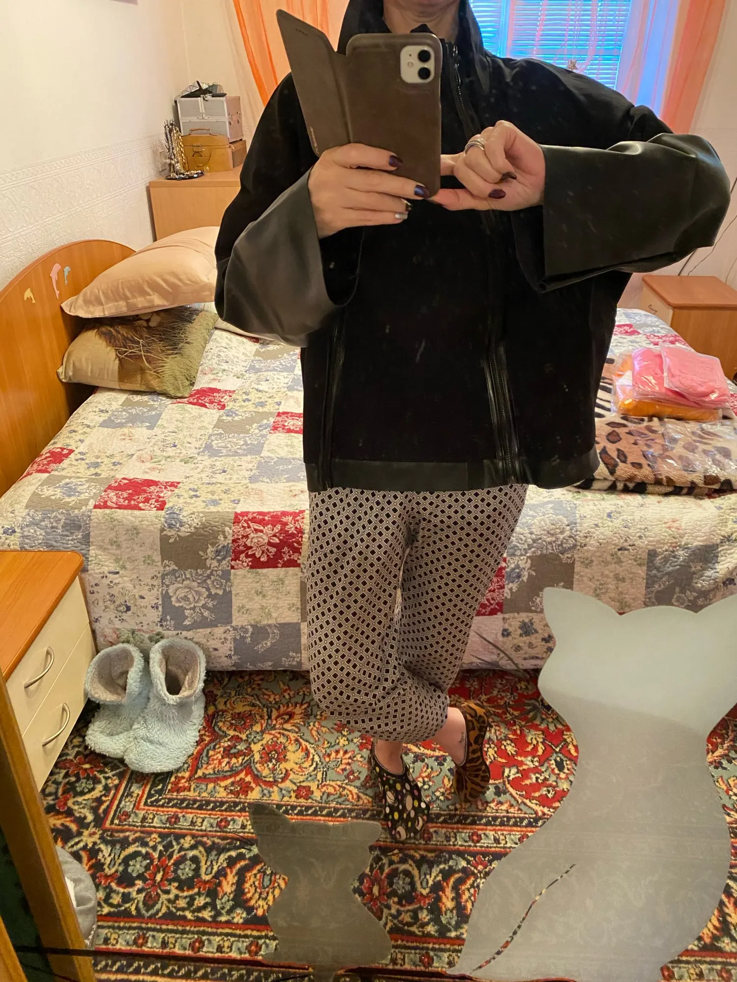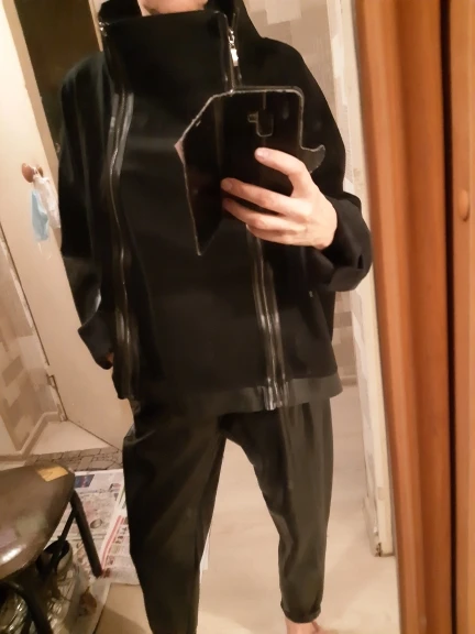 Фирменная, дизайнерская,стильная вещь!!!Сшита идеально!Искусственная кожа очень мягкая и выглядит,как настоящая перчаточная, тонкая кожа!!!Никокого запаха, швы ровные, без лишних ниток, ничего не тянет и не торчит, молнии также работают прекрасно,не заедают, обе открываются!!! Оверсайз, классно смотрится сочетание кожи и ткани, материал плотный, драпируется хорошо, не топорщится, не шуршит!!!На мой рост 164 см. Рукава длинноваты, но их можно или обрезать, или подвернуть, не критично!Великолепная куртка!!!Спасибо продавцу за качественную,классную вещь!!!