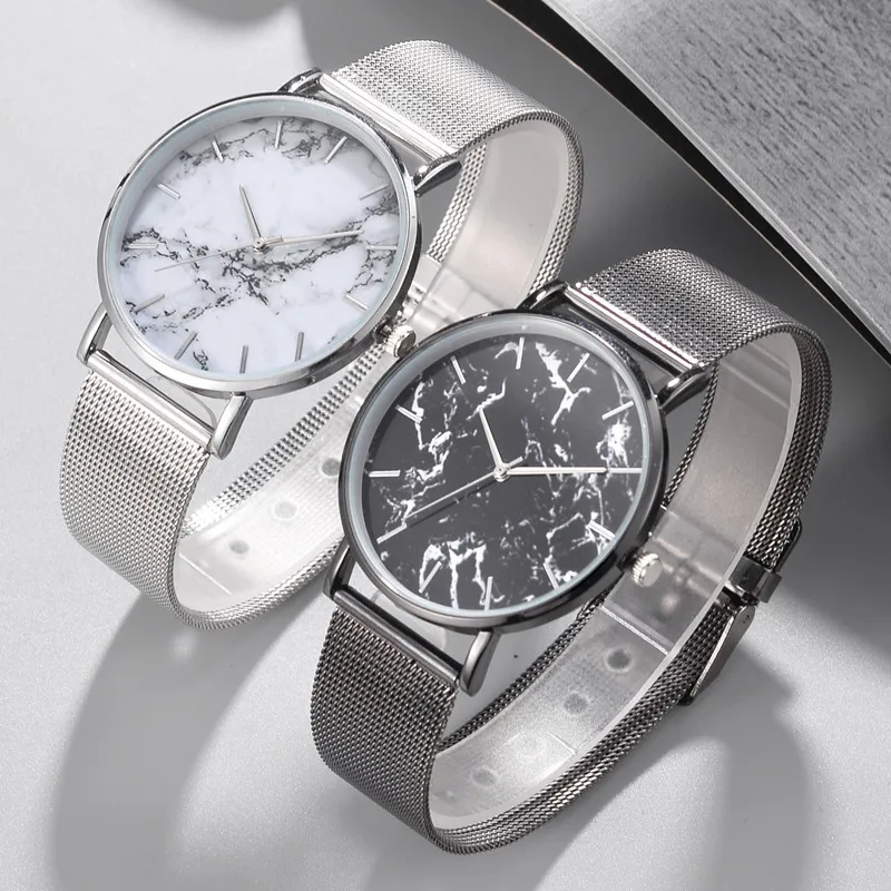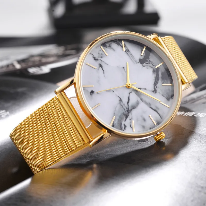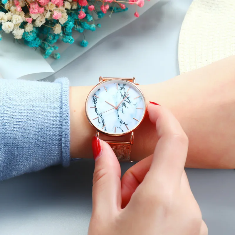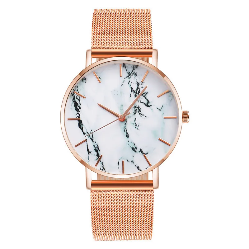 Прямая поставка, розовое золото, сетчатый ремешок, креативные мраморные часы, женские наручные часы, роскошные женские кварцевые часы, подарки, женские часы