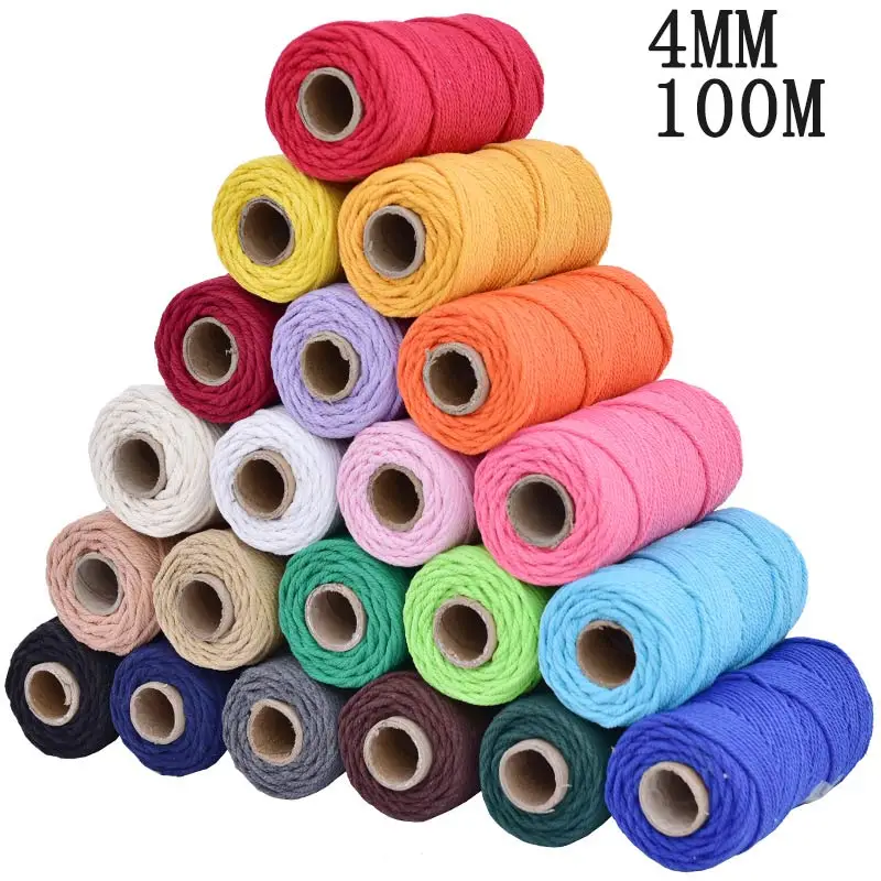 4 мм 100 м длинный Хлопковый Канат 100% хлопок ремесла макраме крас...