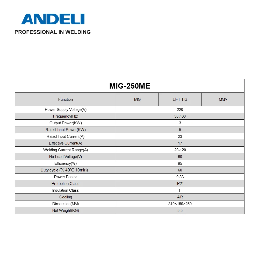 Портативный сварочный аппарат 3 в 1 ANDELI MIG-250ME MIGLIFT TIGARC, для начинающих