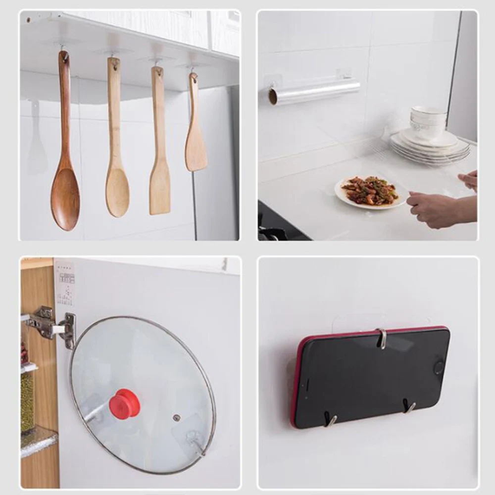 Набор из 24 многофункциональных крючков без прозрачной перфорации, самоклеющиеся, многоразовые, водонепроницаемые, маслостойкие, не оставляет следов на удалении