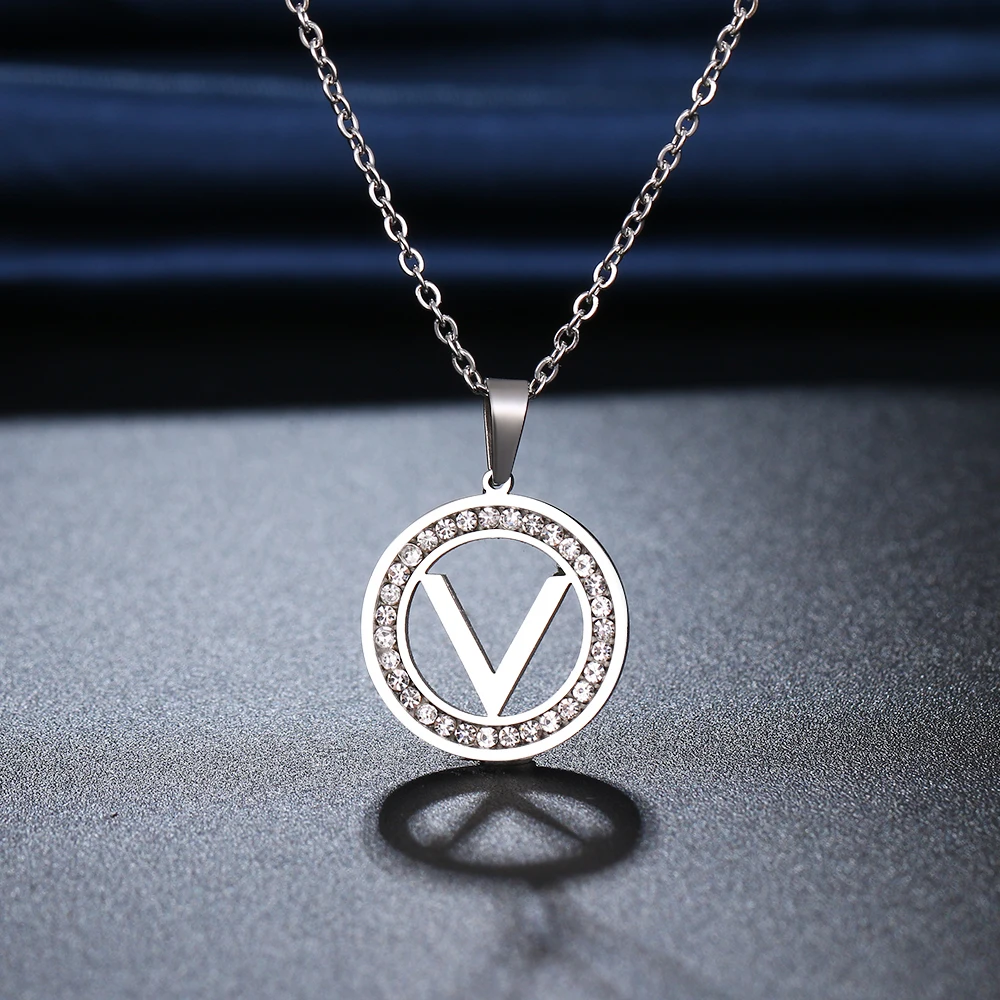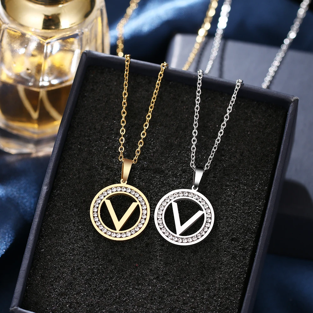 Женское Ожерелье из нержавеющей стали CACANA 316L "V", хрустальные стразы, подарок на день Святого Валентина