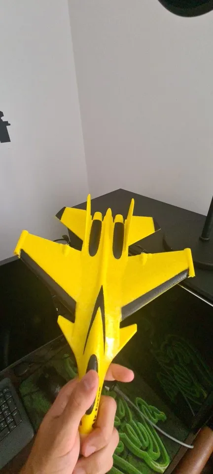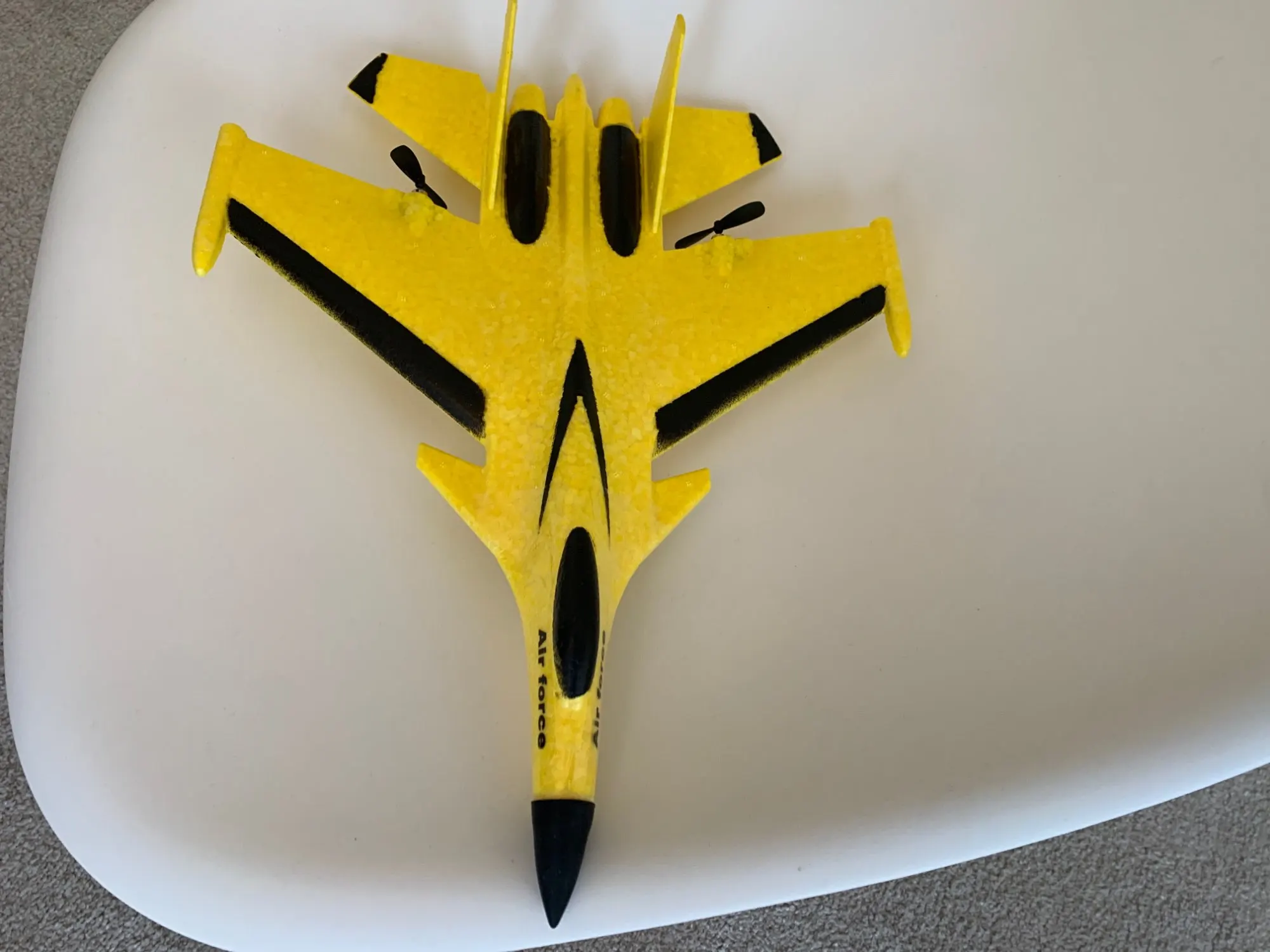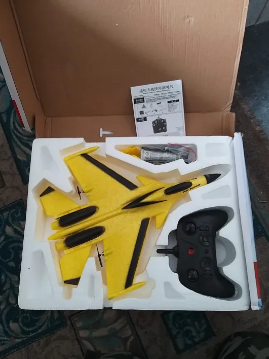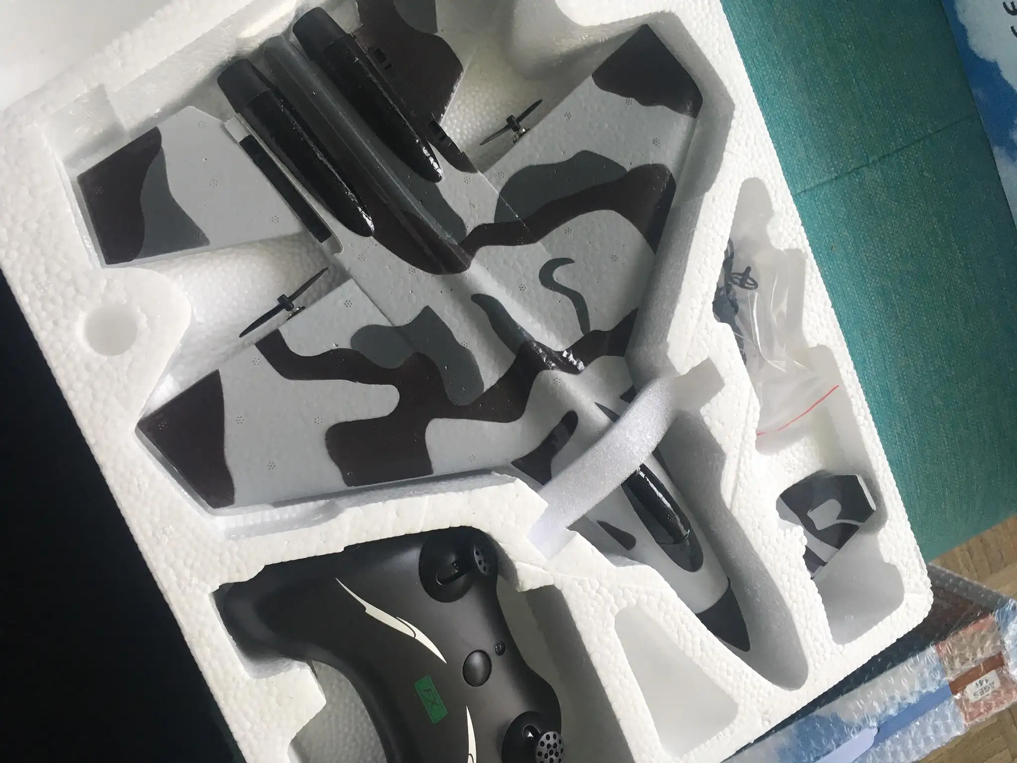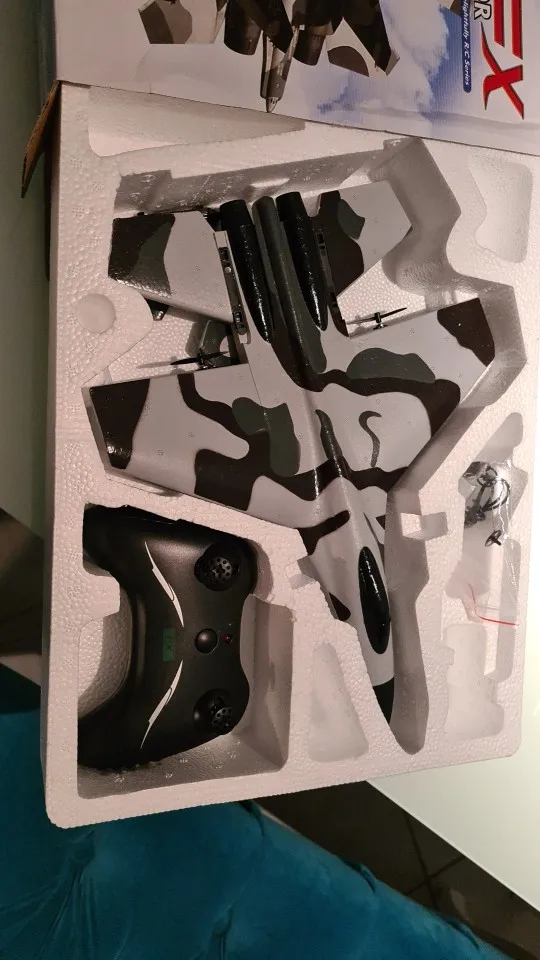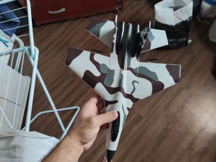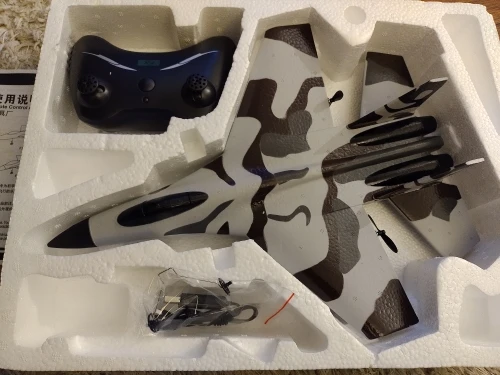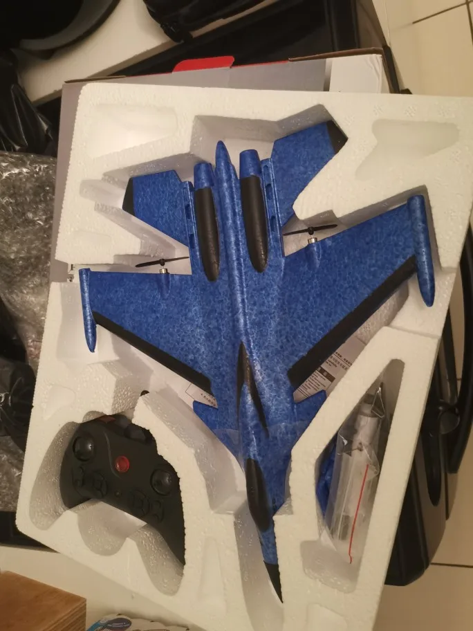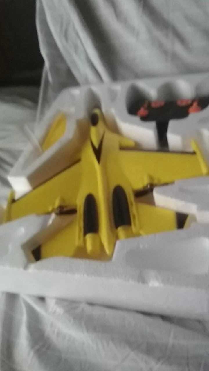 Самолет очень легкий и очень хрупкий. Так что это трудно транспортировать. Вы должны быть очень осторожны, чтобы не сломать его. Материал, кажется, полистирол или что-то похожее. В противном случае они хотят хорошо, и это правда, что когда вы берете стену, она не ломается.