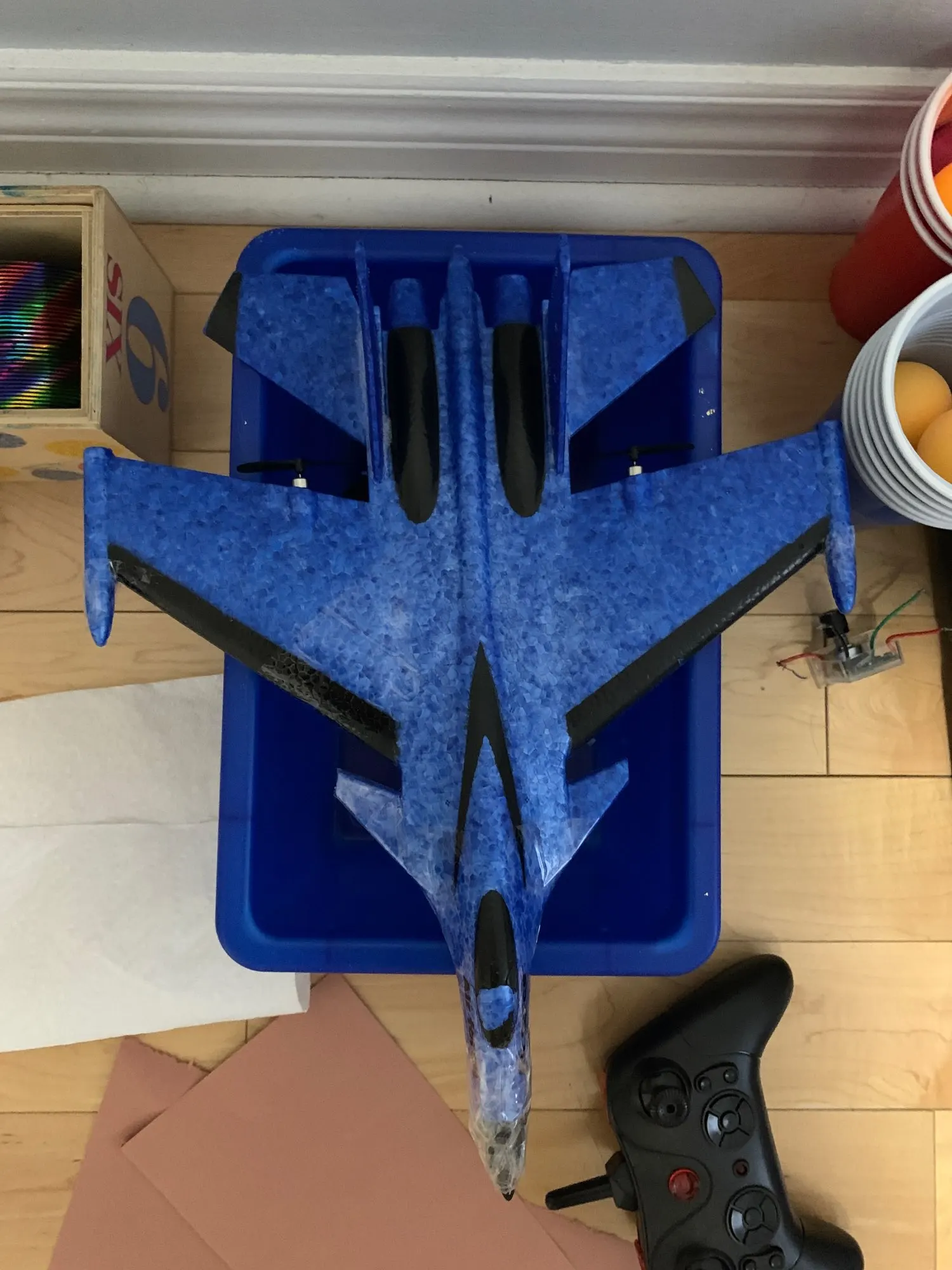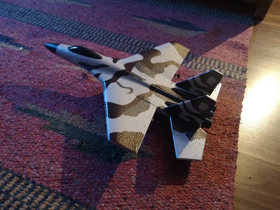самолёт одноразовый. летает, но в первые полеты потеряли колесо, порвался пенопласт.