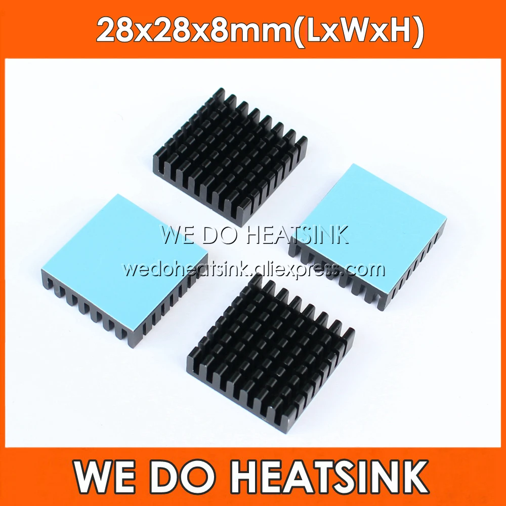 Оптовая продажа 28x28x8 мм белыйсеребристыйчерныйзолотой анодированный алюминиевый радиатор-радиатор с применяемой термолентой