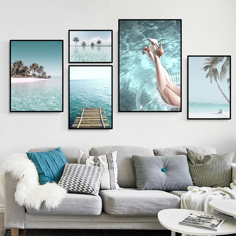 Картина с голубым океанским пейзажем, тропическое солнце, пляжный дорожный постер, парусина с принтом, настенное художественное изображение, Современный домашний декор HD0018
