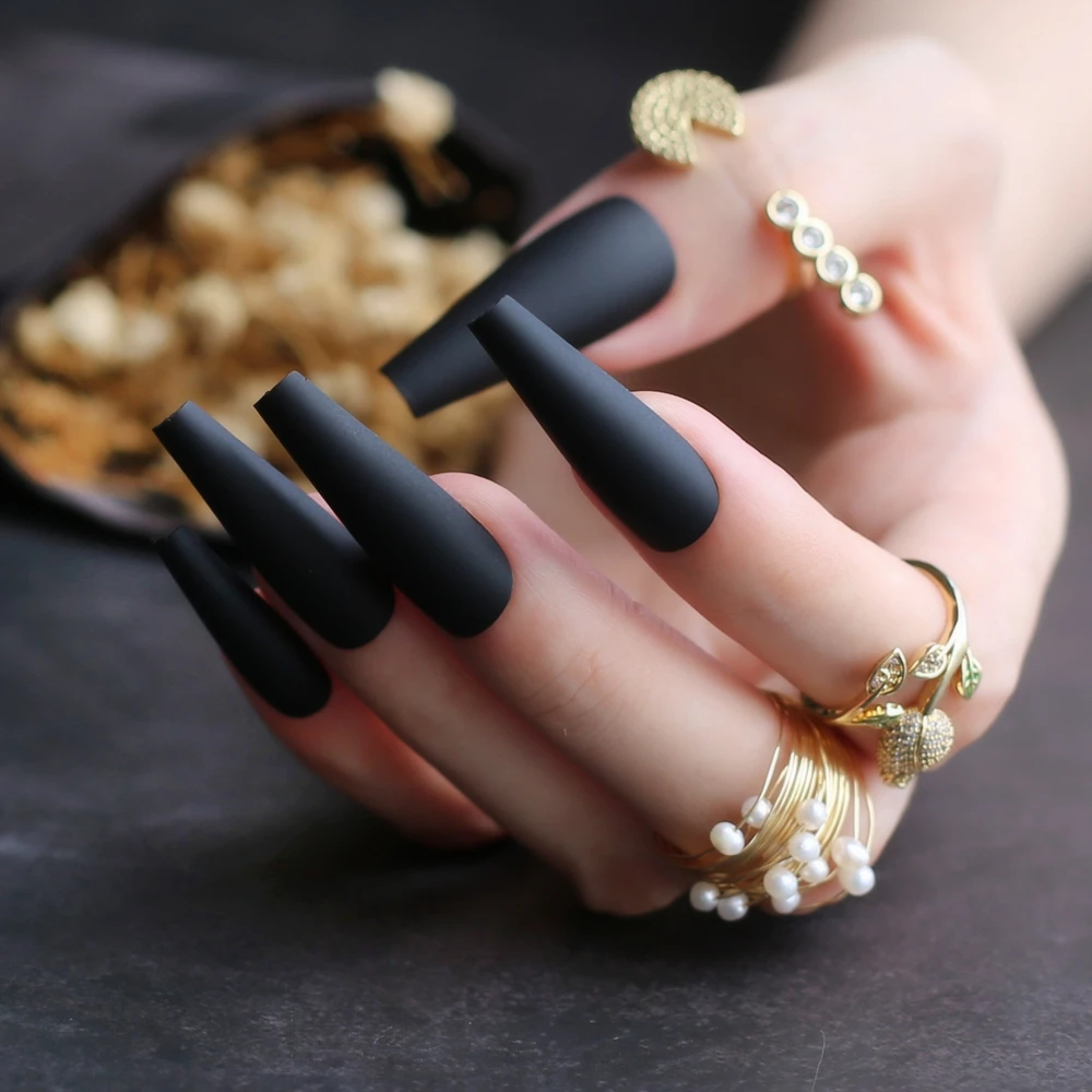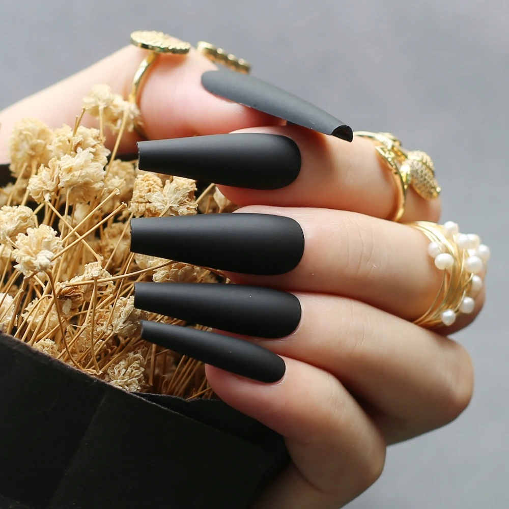Матовый черный удлиненный Набор для маникюра, 20 шт., наклейки не входят в комплект, разные цвета на выбор