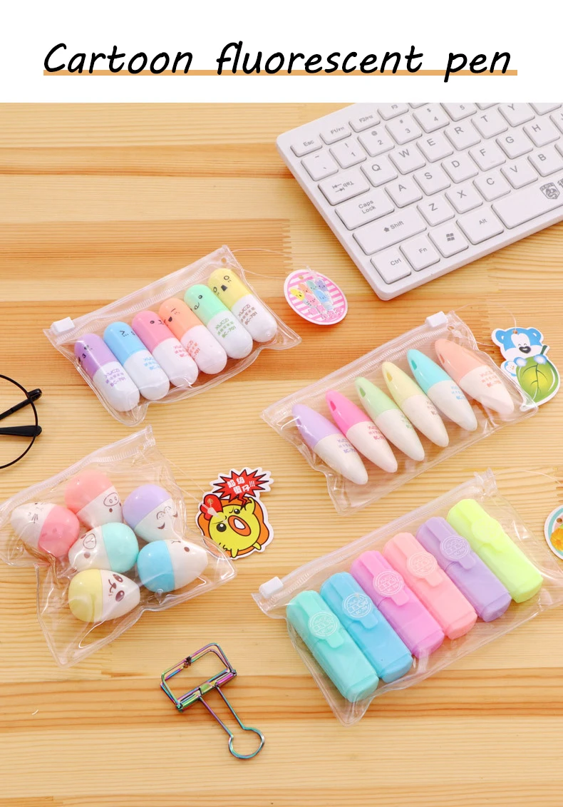 Маркер-капсула витаминный, 6 шт.лот, цветные ручки