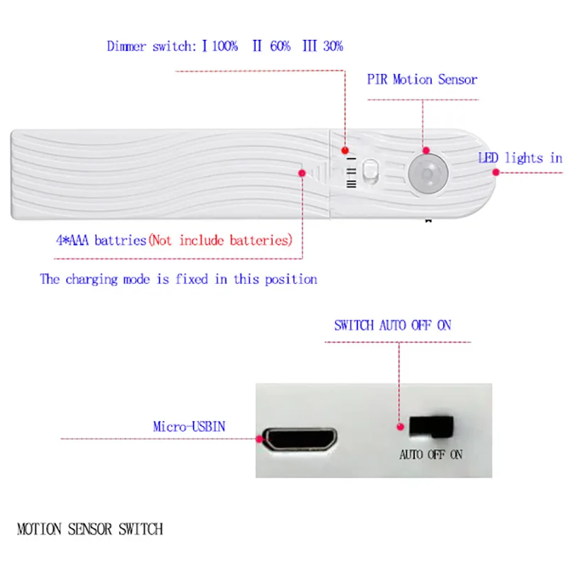 【Четыре режима optional】 датчик движения и ручные режимы: кнопка «Вкл/Выкл» сверху и 24 Часовые и ночные режимы: переключатель «солнце/Луна» сбоку. Когда вы нажимаете кнопку сверху, если красный светильник включается, это означает, что переключатель будет работать все время; Если красный светильник выключается, это означает, что он преобразуется в режим датчика движения. Когда вы ставите кнопку сбоку в режим солнца, она будет работать в течение 24 часов, весь день; Если вы настроитесь на режим Луны, она будет работать только ночью.【Двойной источник питания и регулировка задержки времени с портом micro USB, он может питаться от USB кабеля (не входит в комплект) напрямую, более экономный или 4 батарейки AAA (не входят в комплект), более удобный. И есть кнопка задержки времени, вы можете настроить светильник на время от 15 секунд до 5 минут задержки.【Гибкий аппликатор 】 светодиодный светильник с клейкой лентой 3 м (10 футов) позволяет быстро монтироваться там, где вам нужен дополнительный светильник. Это двусторонний клей, когда вы снимаете бумагу, пожалуйста, будьте осторожны. Его также можно разрезать до нужной вам длины, просто используйте ножницы, чтобы разрезать маленькую черную линию, где находятся медные соединители.【Power экономичность и Warranty】LED потребляет до 2,4 W для того чтобы произвести одной и той же светильник как до 10W лампа накаливания. Только светильник ing до тех случаях, когда он поднимает ваши движения, автоматическое отключение.
