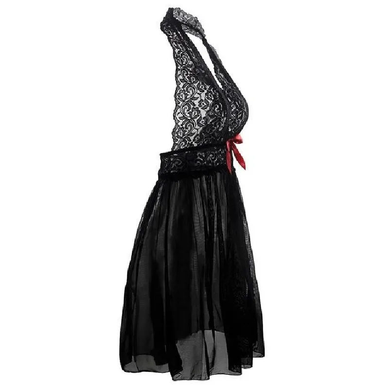 Женская пижама, нижнее белье, кружевная ночная рубашка с V-образным вырезом и лямкой через шею, красный, черный, 3XL