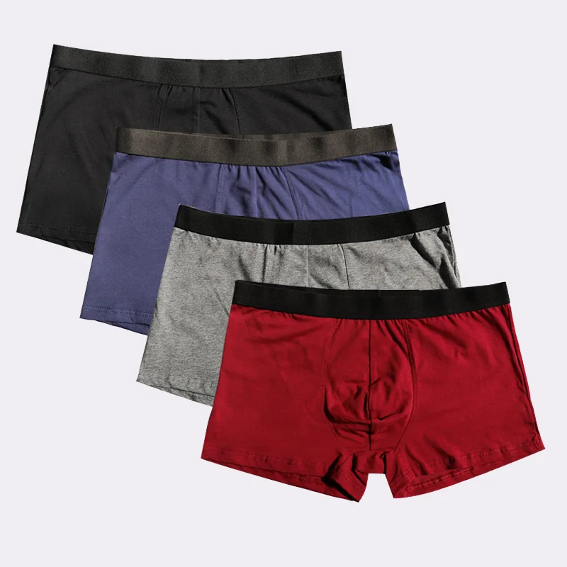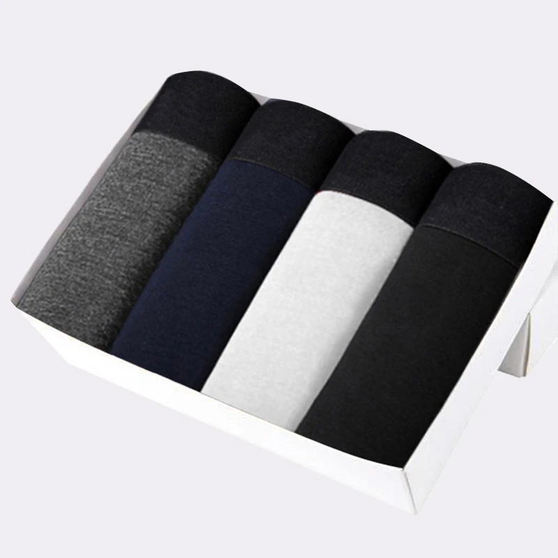 Трусы-боксеры мужские 4 шт.лот, хлопковое нижнее белье, дышащие, однотонные, удобные шорты, нижнее белье