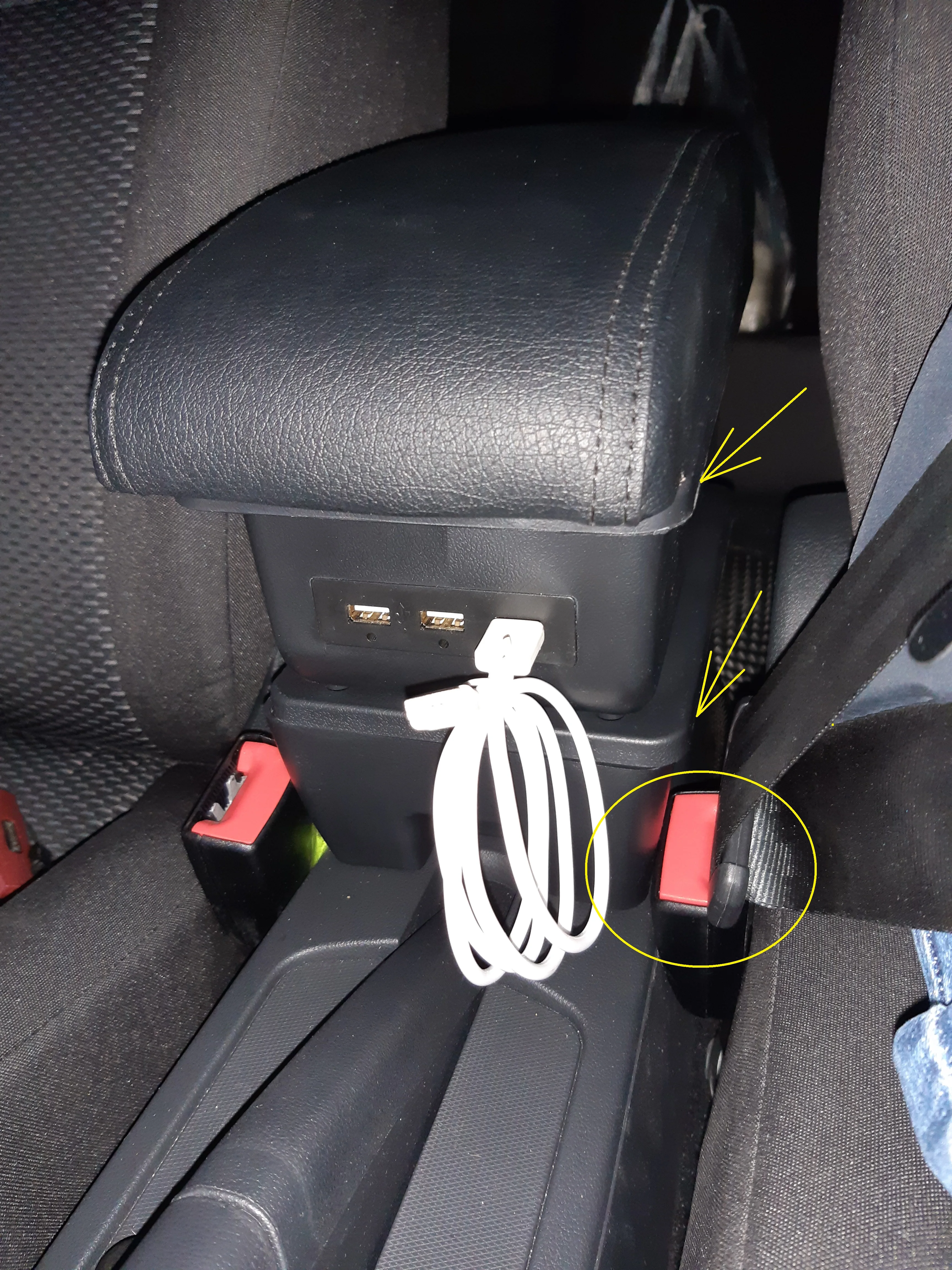 Очень плохой товар. Запах неприятный. Пластик тонкий и хрупкий. ПЕРЕКРЫВАЕТСЯ доступ к замку ремня безопасности, очень и очень неудобно вставлять ремень, также ТРАВМИРУЕТСЯ РУКА об острые края деталей подлокотника (смотри фото1 со стрелками), Подлокотник немного шатается вместе с консолью авто и сам поскрипывает. 1 деталь с браком (сломан буртик), также при ее установке отломился кусок, пришлось доработать. Шнур питания USB белого цвета, почему не черный? (менее заметен был бы). В итоге завтра ДЕМОНТИРУЮ его из автомобиля, пользоваться невозможно!!! Не покупайте "ЭТО" без острой необходимости. Копите деньги на оригинал.