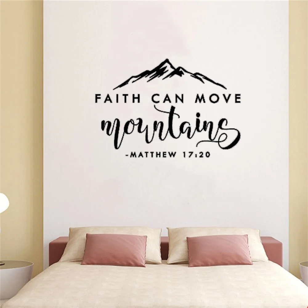 Виниловая наклейка на стену с надписью Faith Can Move Mountain (Мэтью 17:20)