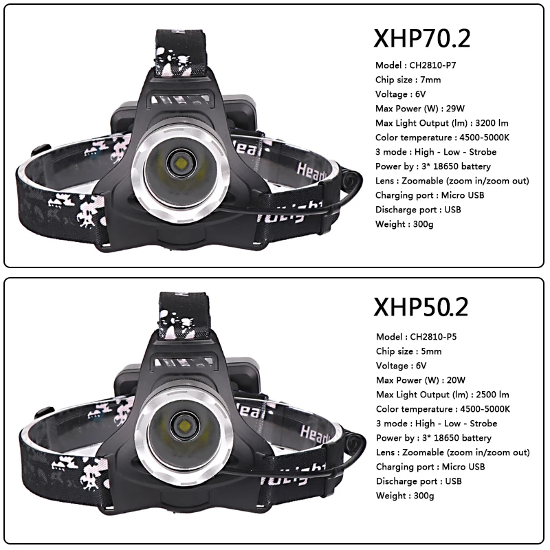 21.Советы по использованию фар XHP70:Мы рекомендуем использовать нашу высококачественную зеленую батарею 18650 емкостью около 2600 мА/шт. 3 шт. 18650 батареи около 7800 мАч, они могут удовлетворить фары XHP70 в течение длительного времени на открытом воздухе. Он может работать в течение 8-10 часов и может использоваться какМобильный источник питания.