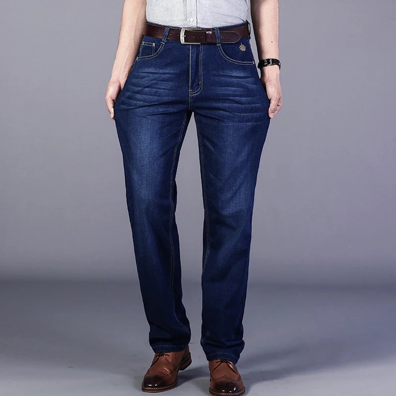 Мужские классические джинсы стрейч, повседневные джинсовые брюки темно-синего цвета, облегающие брюки, 2020