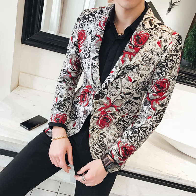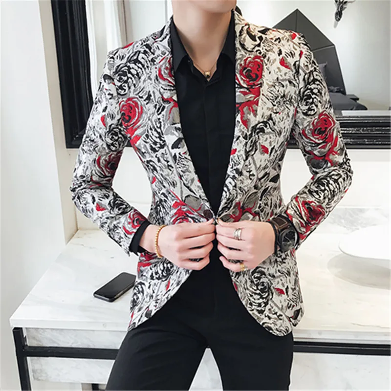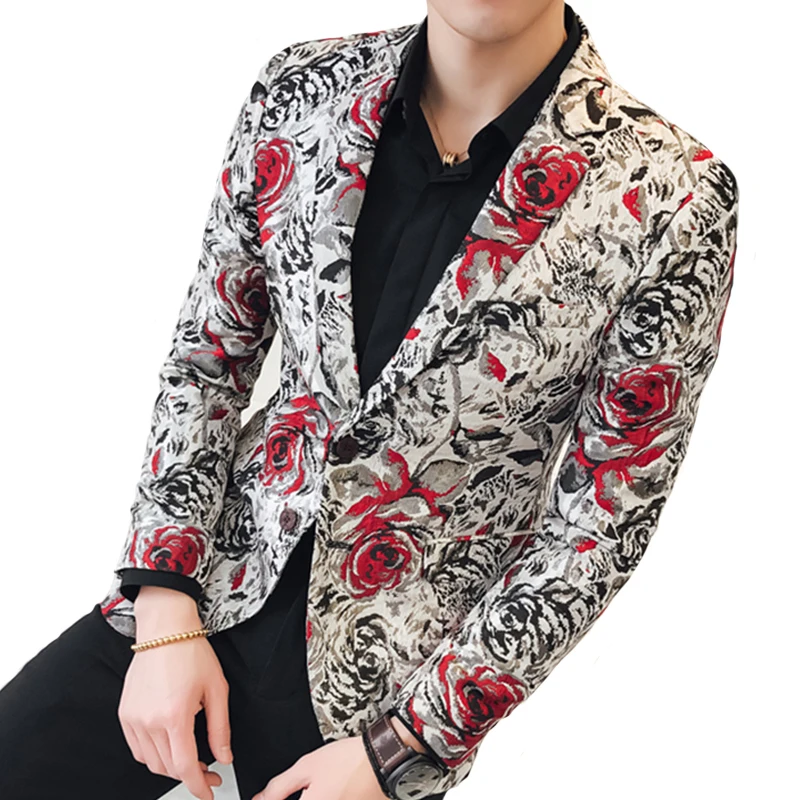 Мужской Блейзер высокого качества с вышивкой и принтом, Клубная одежда, мужской официальный Свадебный блейзер для выпускного вечера, Мужской приталенный костюм, размера плюс 5xl