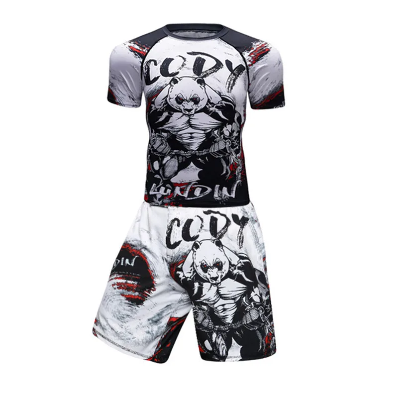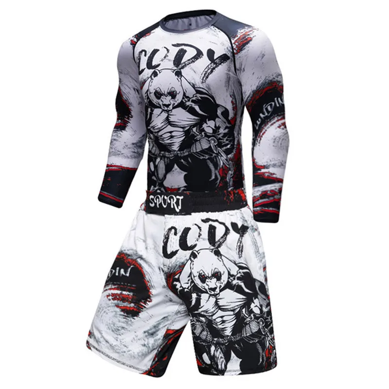 Мужской спортивный костюм MMA Rashguard Jiu футболка с надписью Jitsu + брюки для фитнеса боксерские майки комплект BJJ Muay Thai спортивный костюм брендовый