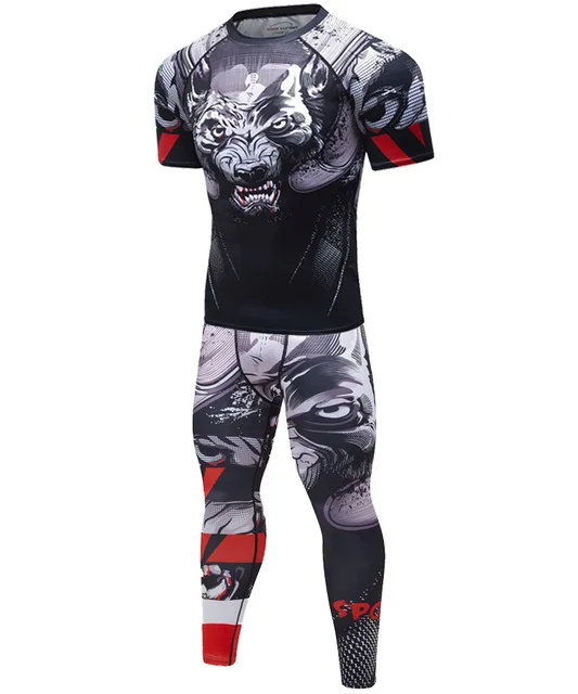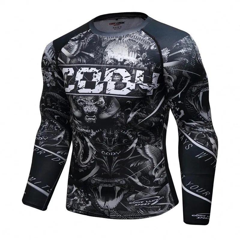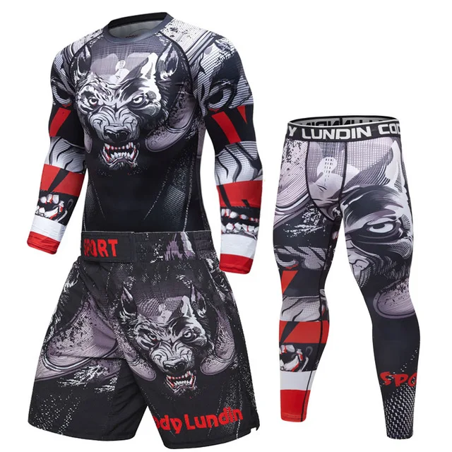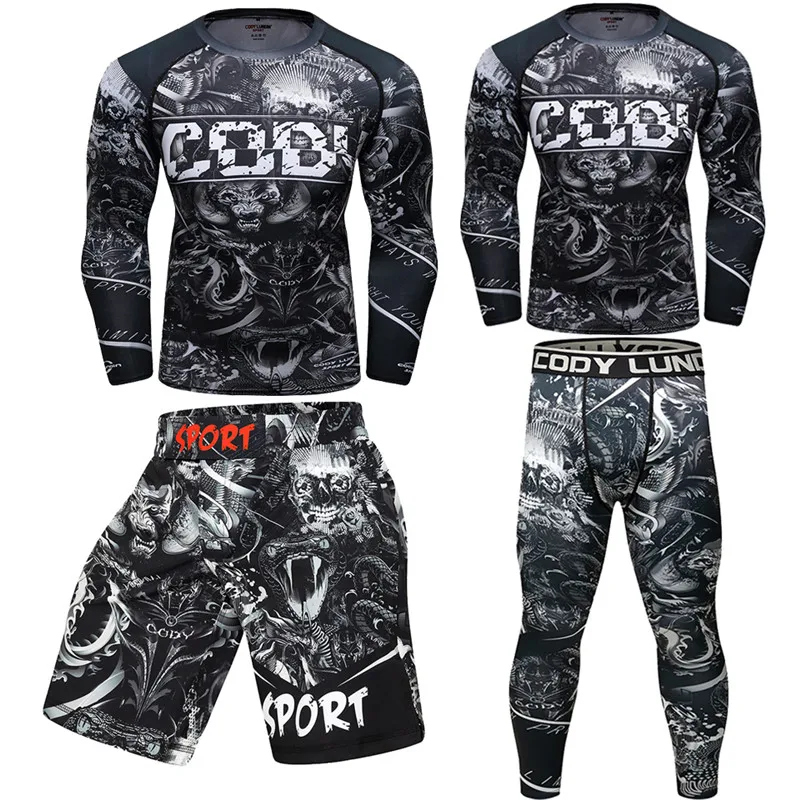 Мужской спортивный комплект для кикбоксинга, компрессионная футболка + штаны, облегающие, с длинными рукавами, Рашгард для фитнеса, тренировочная одежда для ММА, трикотажные изделия