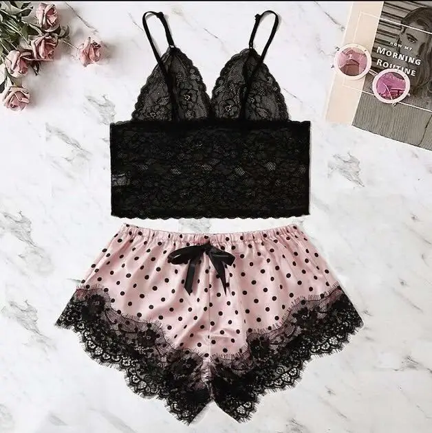 Сексуальные атласные пижамные комплекты, Женский пижамный комплект, женская пижама с глубоким v-образным вырезом, шорты на бретелях, ночное белье для женщин, кружевное ночное белье, домашняя одежда