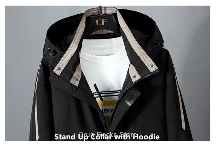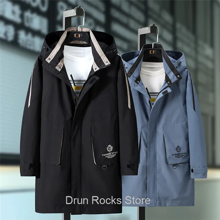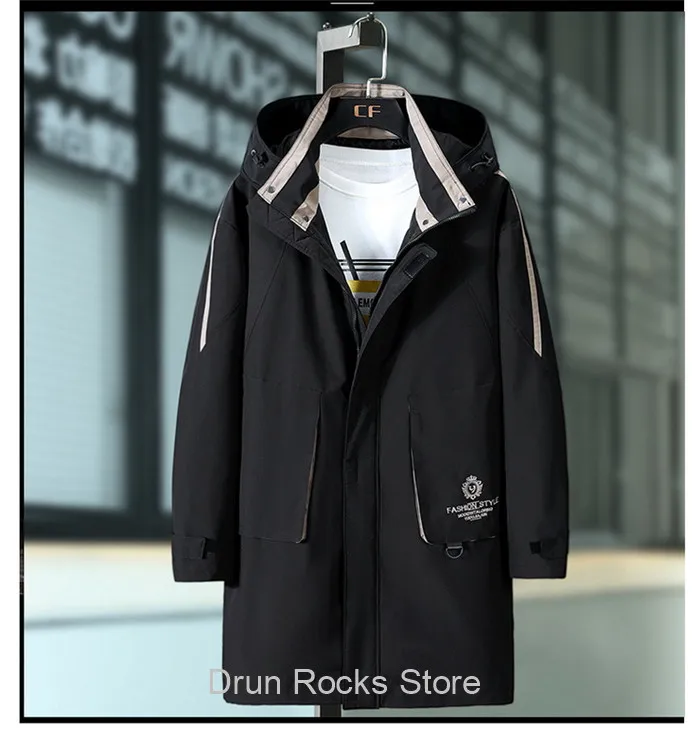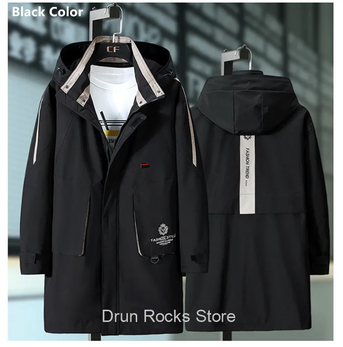 Осенняя куртка, Мужская одежда, свободная, большие размеры 5XL, 6XL, 8XL, 9XL, 10XL, пальто, черные толстовки, Мужская Длинная ветровка, мужской Тренч с капюшоном