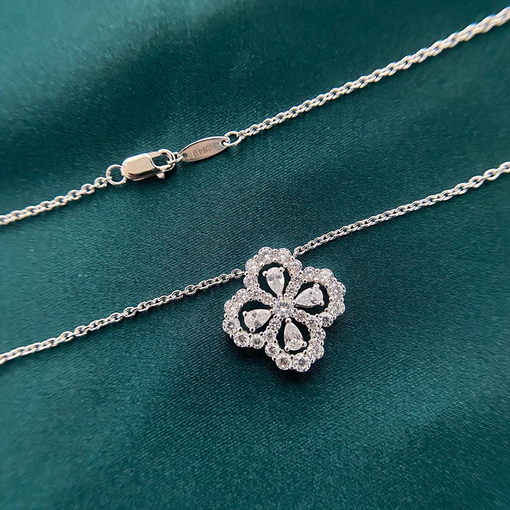 FFGems luckly четыре листа клевера Стерлинговое Серебро 925 ожерелье кулон создан moissanite драгоценный камень для женщин подарок коробка ювелирных изделий