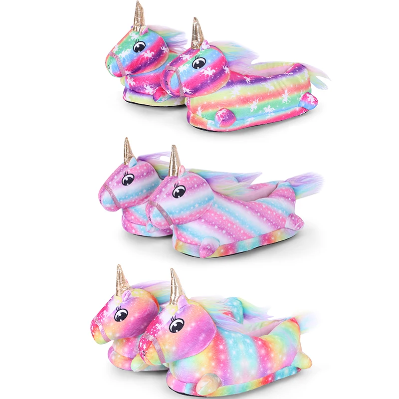 Домашние тапочки-кигуруми с единорогом, зимняя детская обувь для ма...