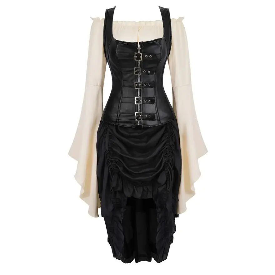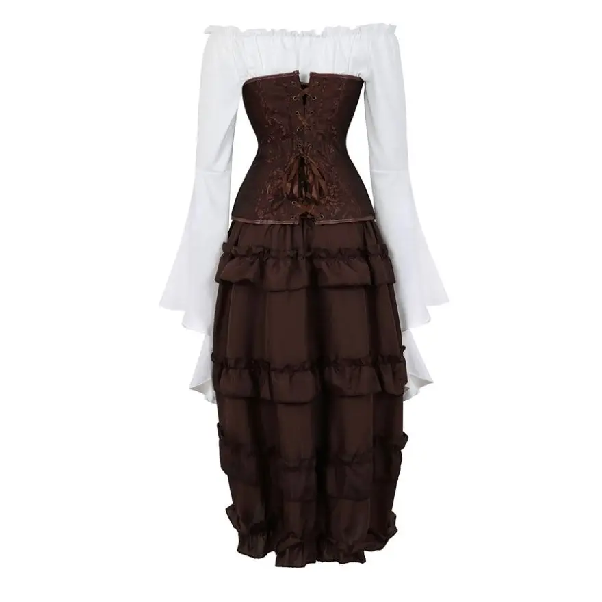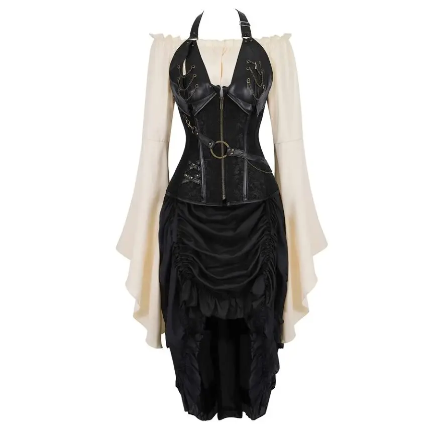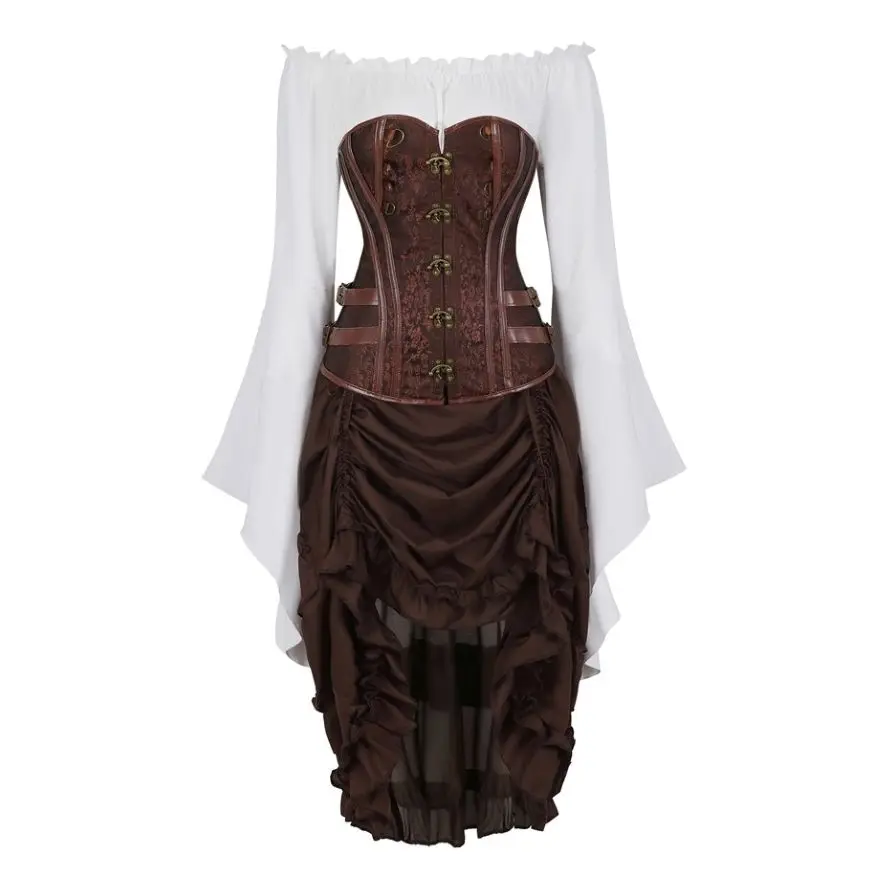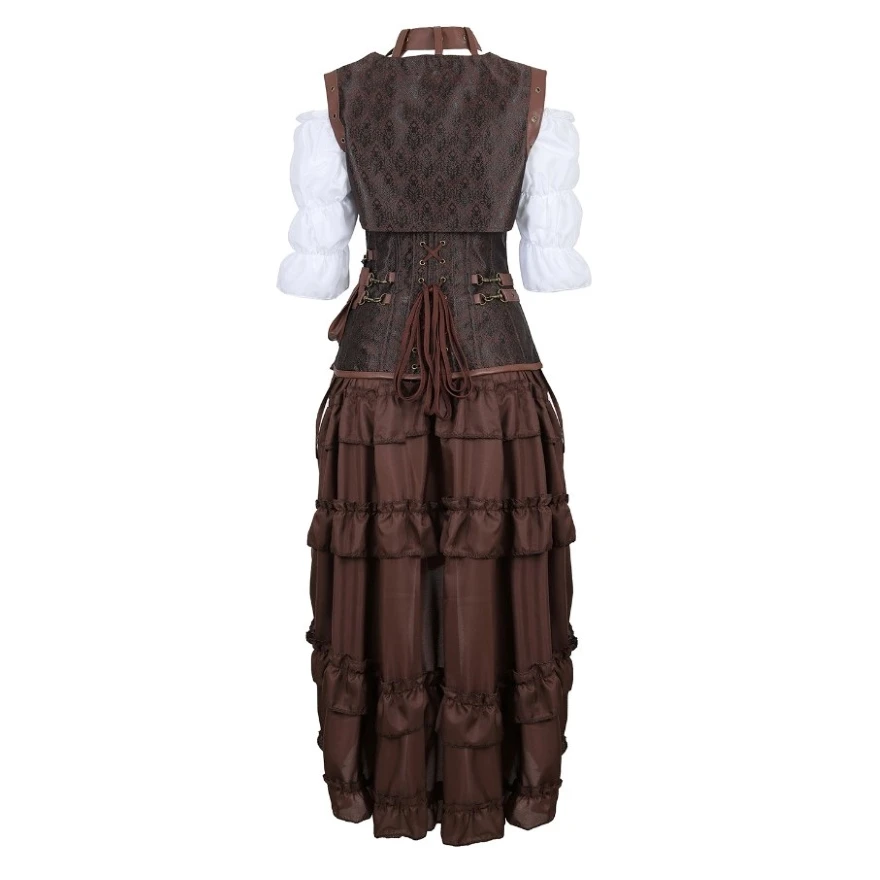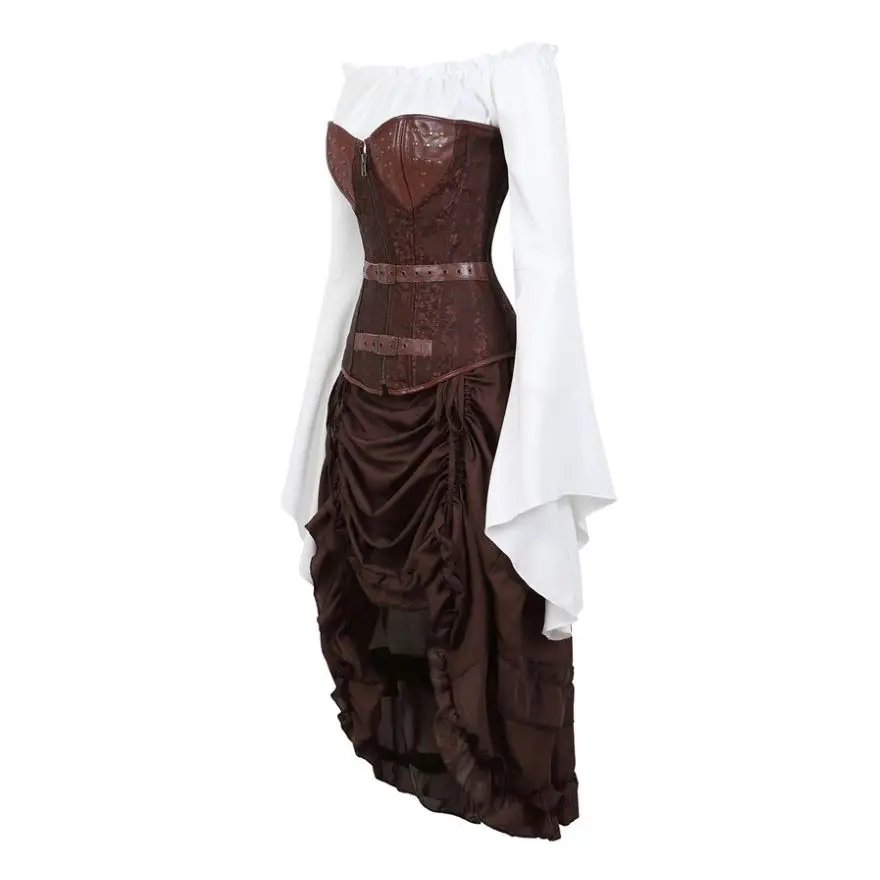 Женское платье-корсет в стиле стимпанк, Пиратская рубашка, корсет в готическом стиле, нижнее белье, топ с неровной юбкой в стиле бурлеск, костюм на Хэллоуин, S-6XL