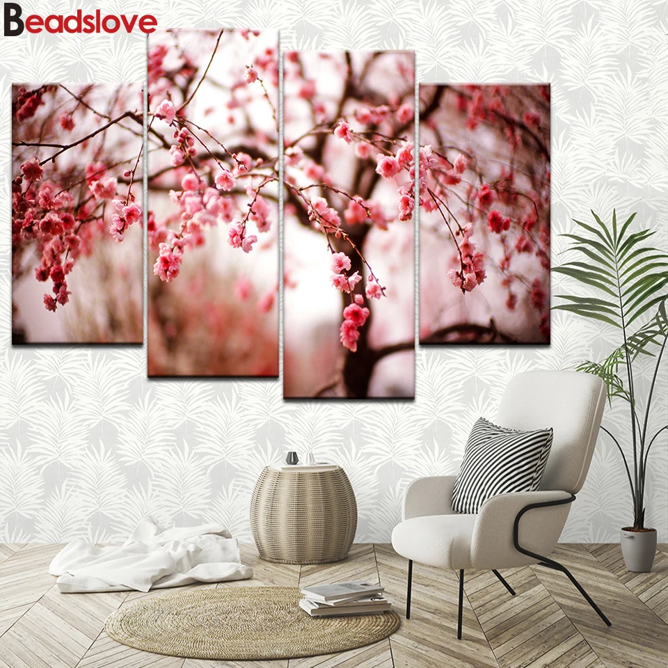 4 шт. цветущая вишня деревья цветы 5d diy Алмазная картина полная дрель Алмазная вышивка распродажа Алмазная мозаика набор для домашнего искусства
