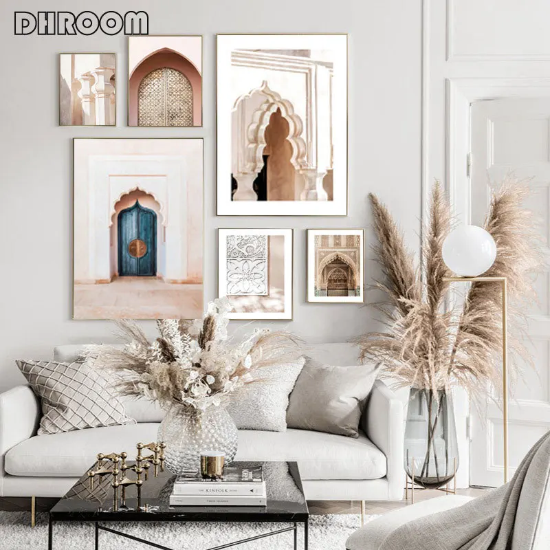 Марокко Арабская дверь архитектура Холст Картина Туризм скандинавский ретро постер печать мусульманское настенное искусство картина мусульманский Декор