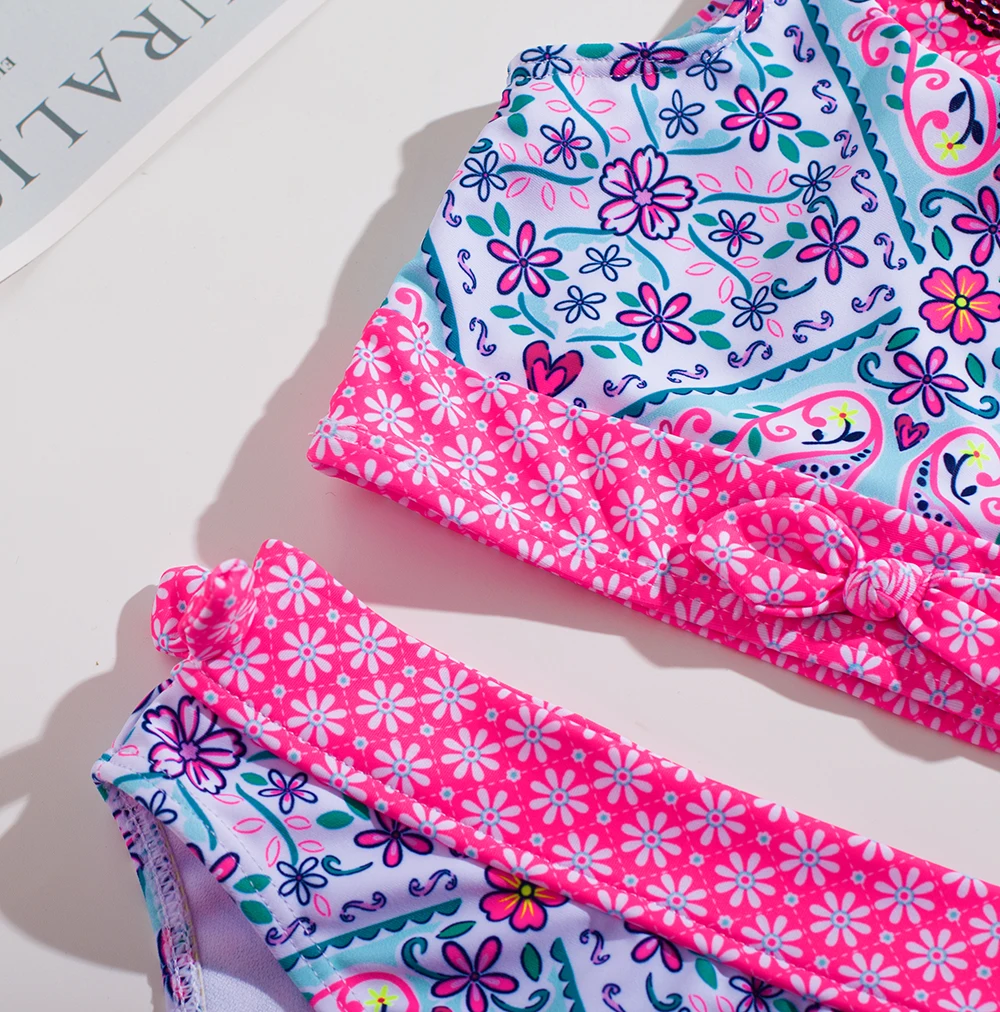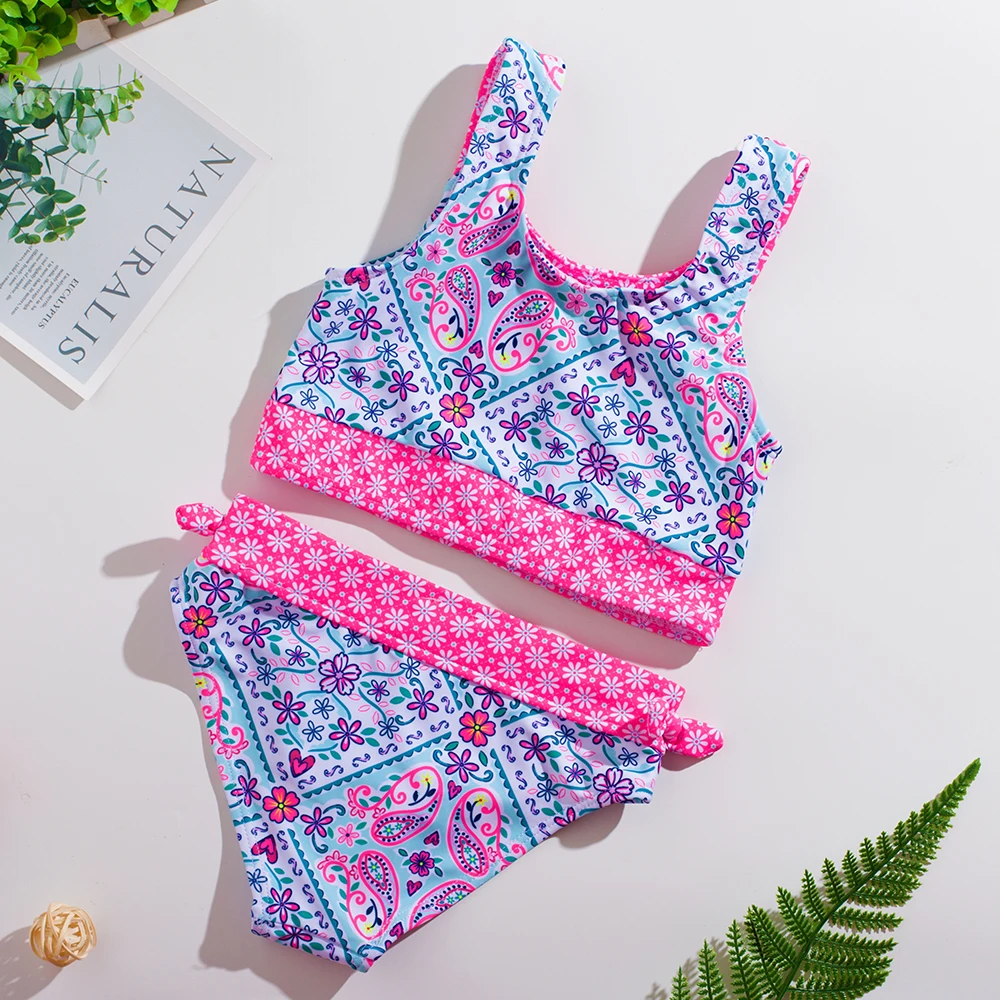 Купальник для маленьких девочек, из двух предметов, купальники для девочек с принтом ананаса, купальный костюм для маленьких девочек, Детский комплект бикини,-От 2 до 12 лет, 939