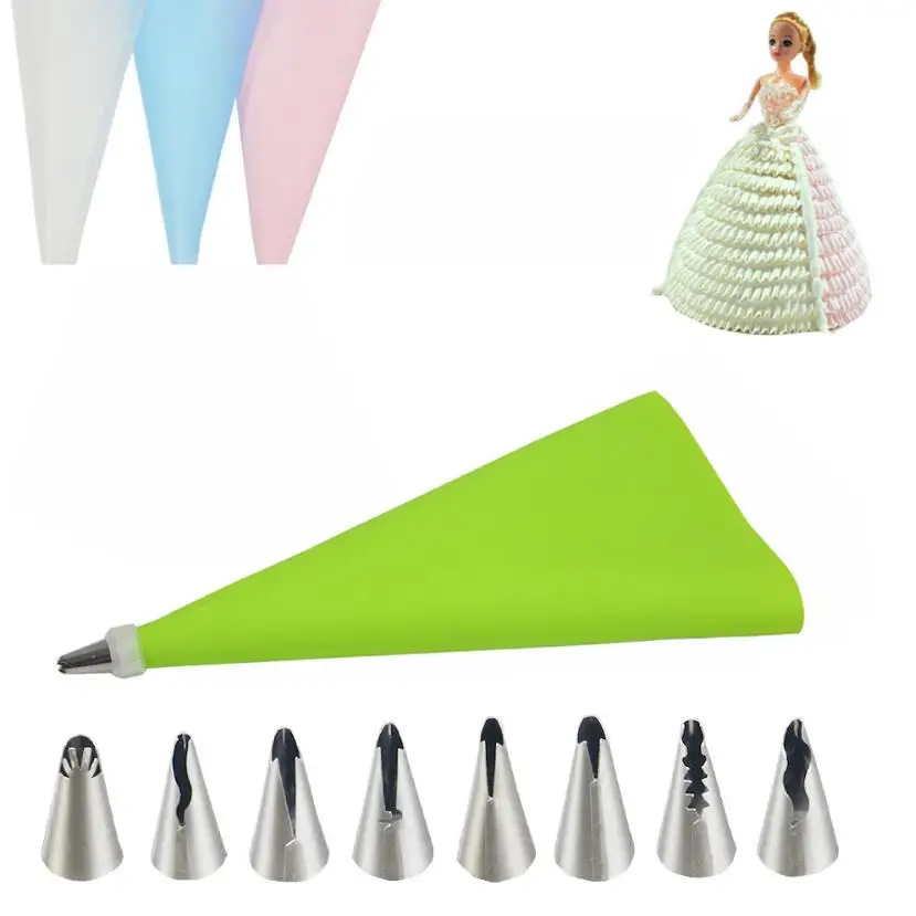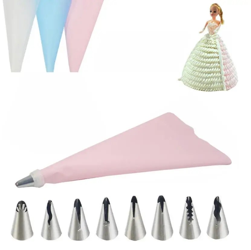10 шт.компл. Украшения Свадебного Торта Глазурь из нержавеющей стали русские насадки юбка насадка для пирожных наконечники для выпечки силиконовые мешки для пирожных