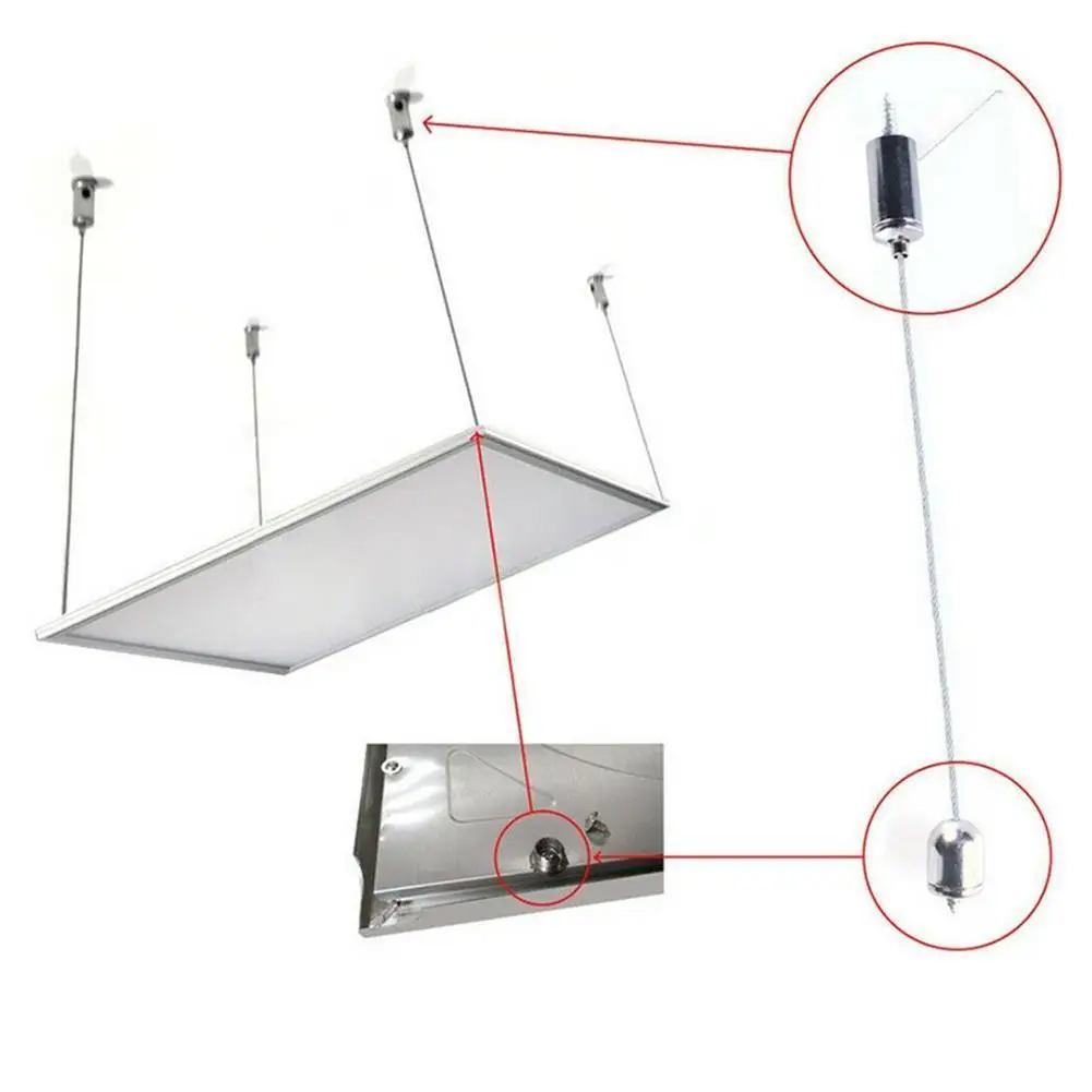 Описание:Подвеска монтажный комплект проводов для Светодиодный Панель огни позволяет Панель для того, чтобы не мешалась, ее на потолок.Идеально подходит для ситуаций, когда утопленное крепление невозможно, или для ультра современного внешнего вида.Один конец подвесного комплекта винтов к потолку, другая сторона затем петли через поставляемые кронштейны, которые прикрепляются к панели.Регулируемая длина (10-100 см капля).Это набор из 4 стальных кабелей, которые делают установку светодиодный панели висящей от стальных кабелей.Стальные кабели 1 м, но расстояние от потолка настраивается пользователем, обрезая кабель до желаемой длины.Вложения металлические и качественные, отличный конечный результат.Совместимость с светодиодный панели с помощью винта на спине.Простота установкиПараметрыМатериал: стальПосылка включает в себя:Каждая упаковка:1 х 1 м стальные провода и винты