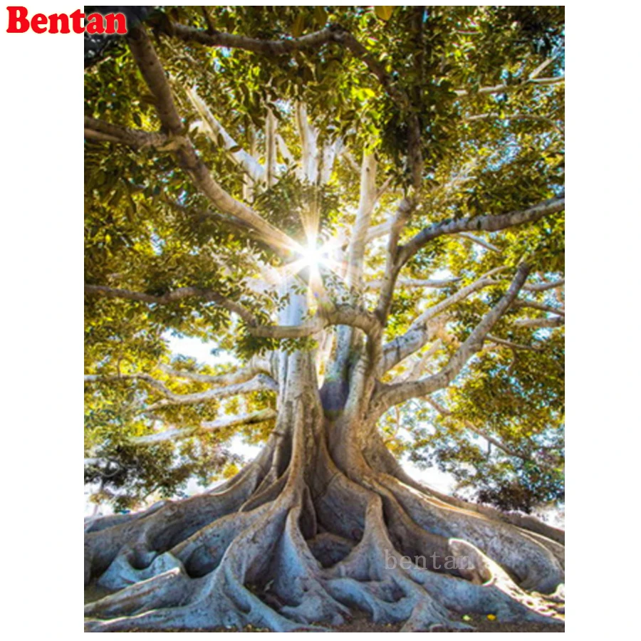 5D DIY Алмазная картина полностью квадратная круглая дрель Дерево жизни Солнечный свет Пейзаж Алмазная вышивка мозаика рукоделие