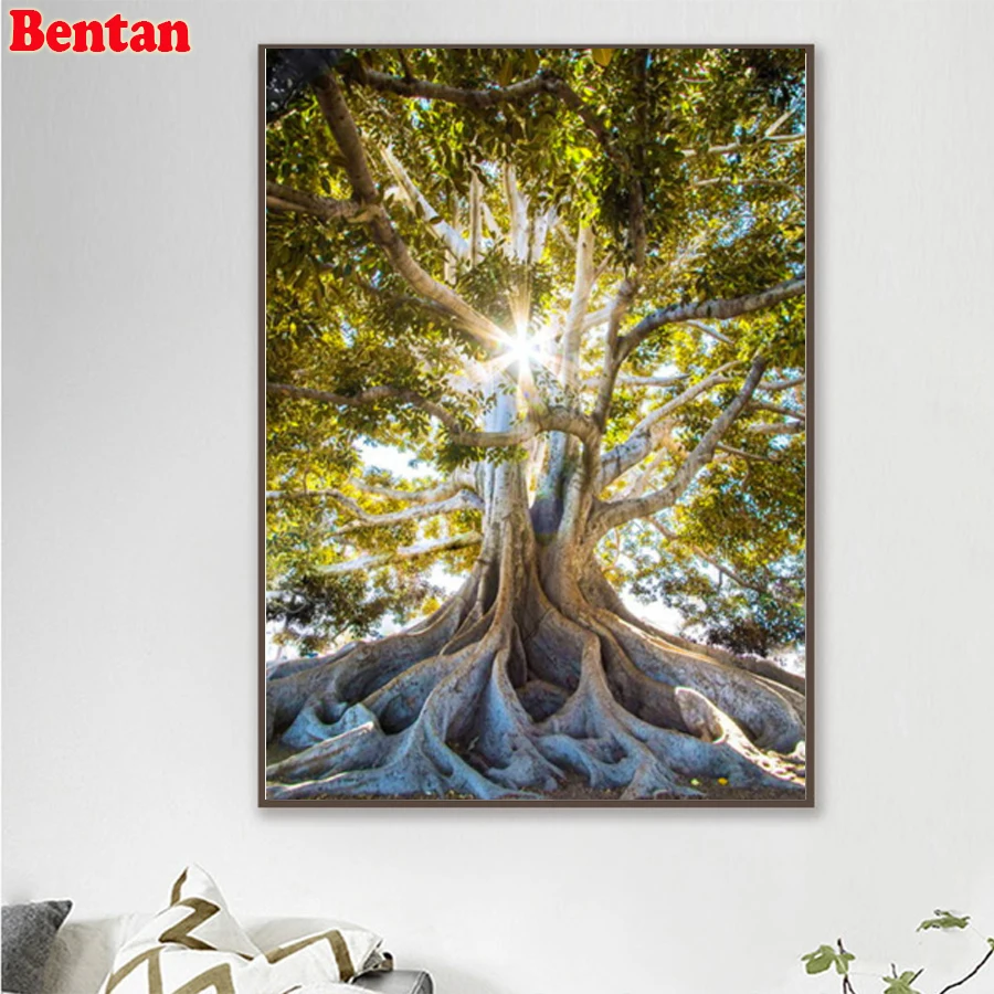 Алмазная 5D картина сделай сам, полноразмерная вышивка квадратными стразами, с изображением дерева жизни, солнечного света, пейзажа, мозаика, рукоделие