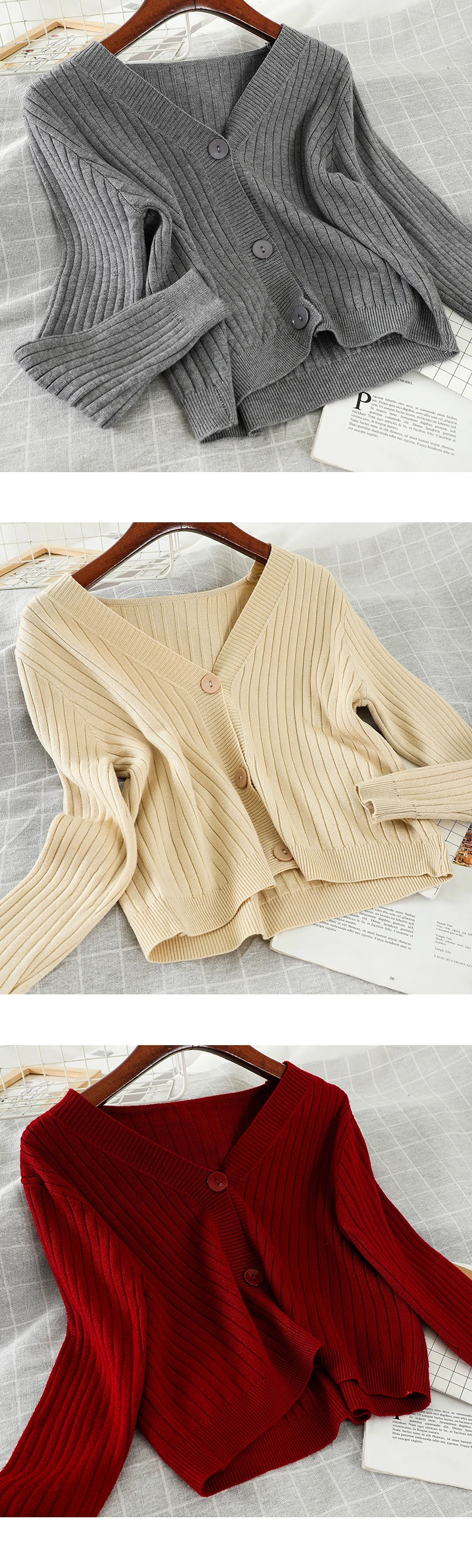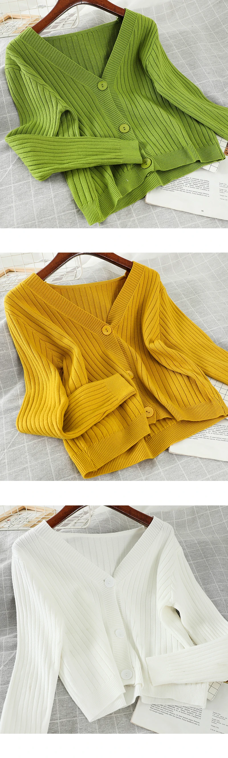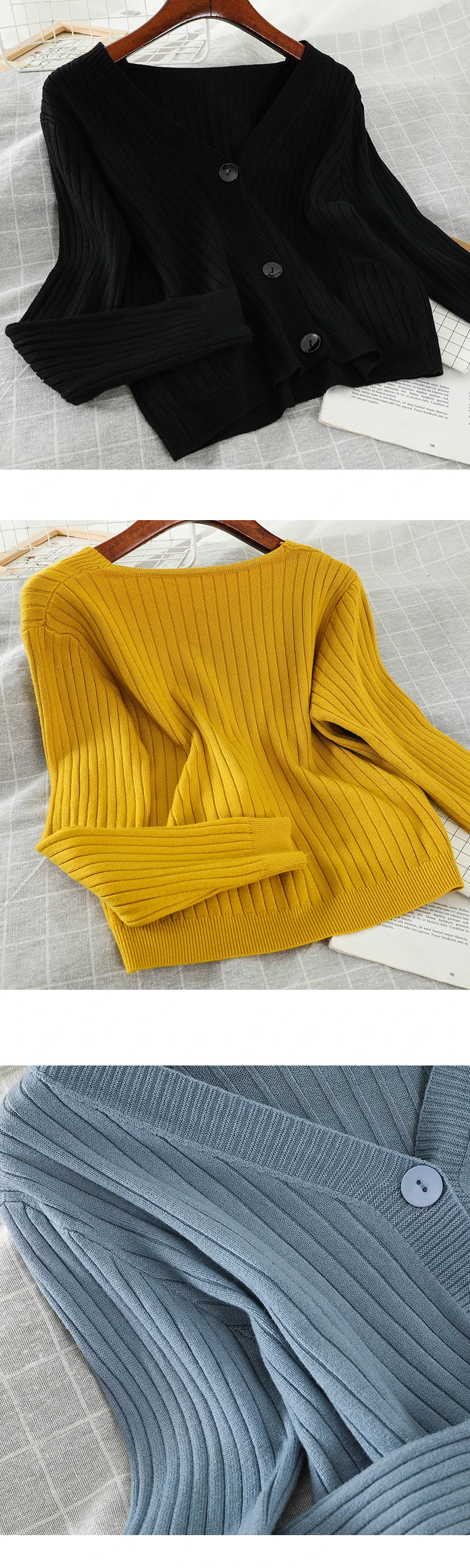 Новинка, однотонный вязаный кардиган Neploe, Модный женский однобор...