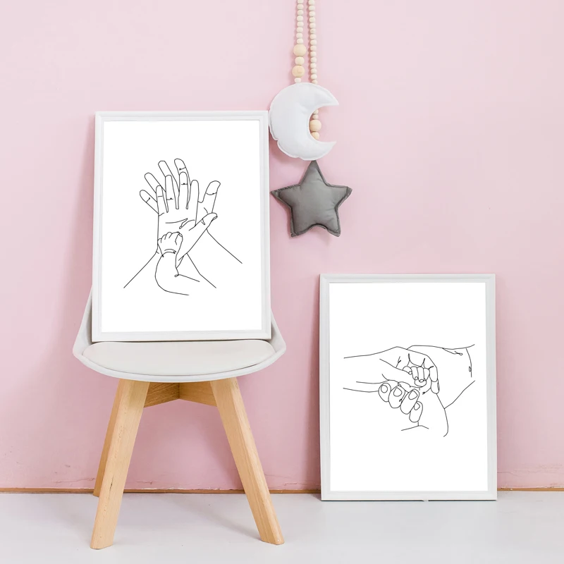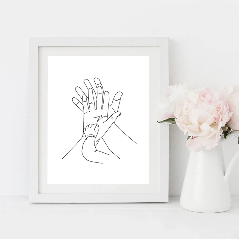ThemeFamily Baby Hands Line Art Canvas Prints