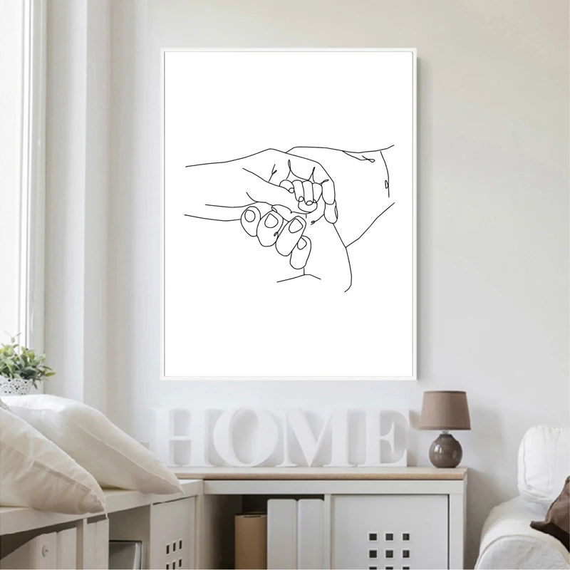Абстрактная линия рук Печать на холсте семья пары ребенок одна линия рисунок любовь плакат настенная живопись холст Декор для спальни