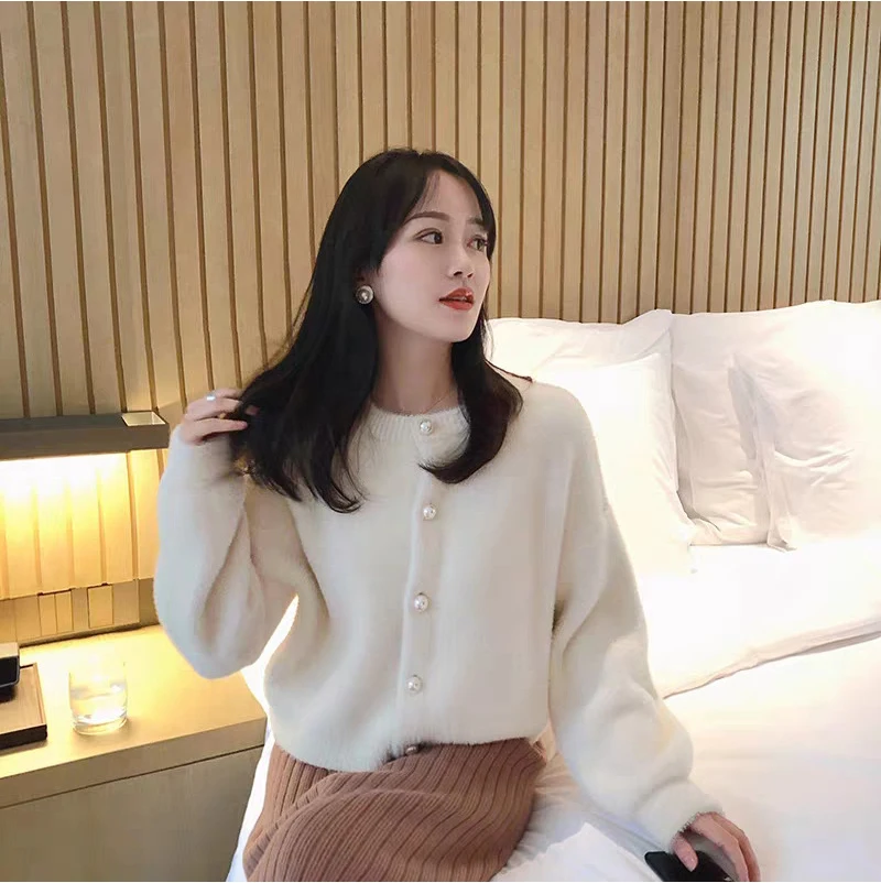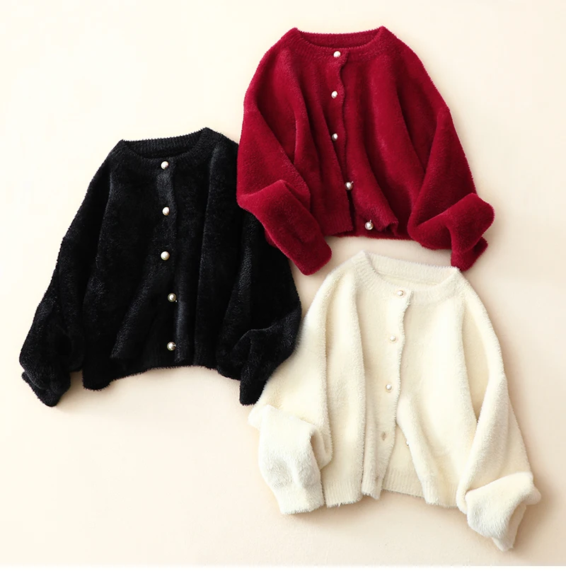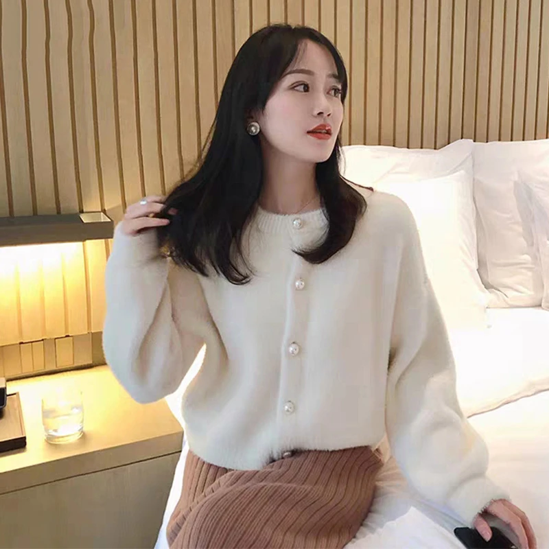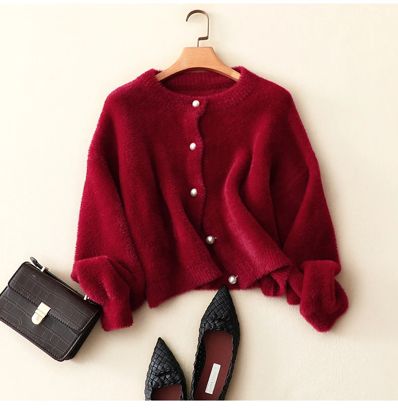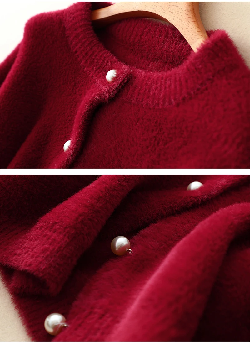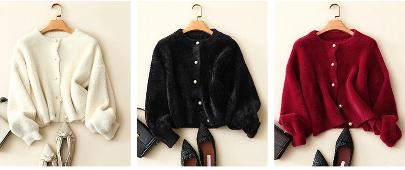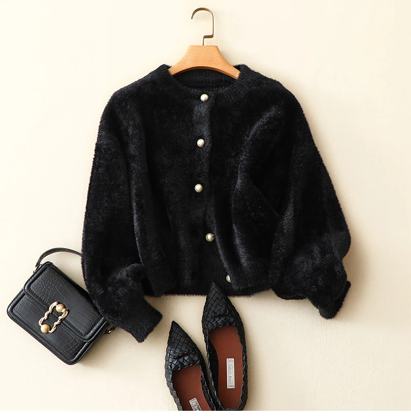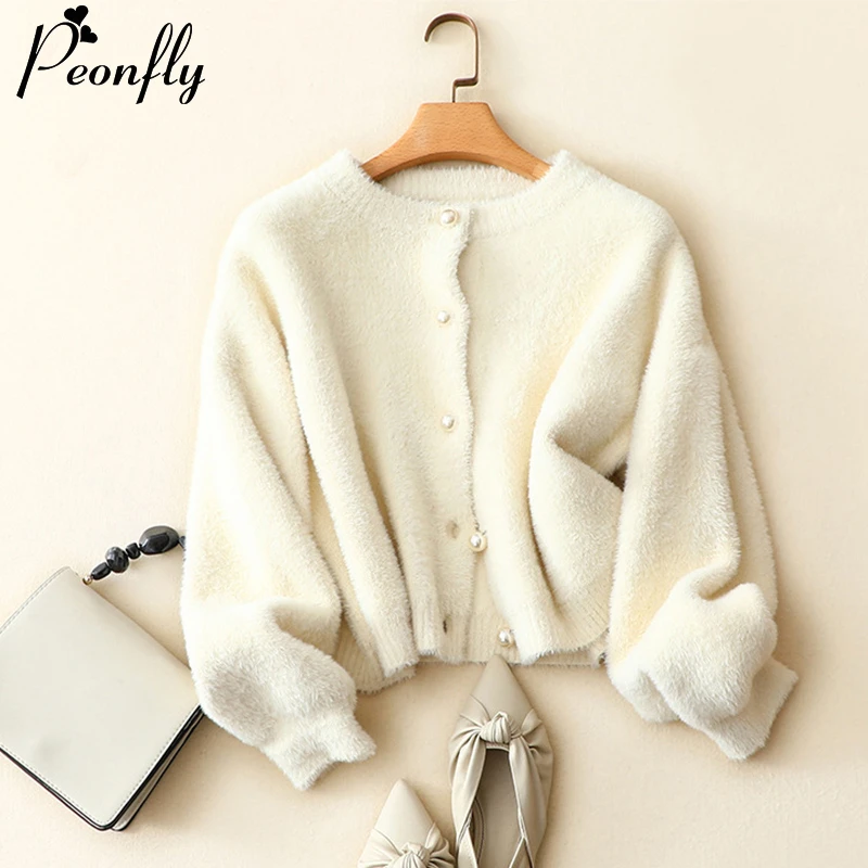 Женский меховой кардиган PEONFLY, из искусственного меха норки, с длинным рукавом, с бисером, на пуговицах, Осень-зима 2020