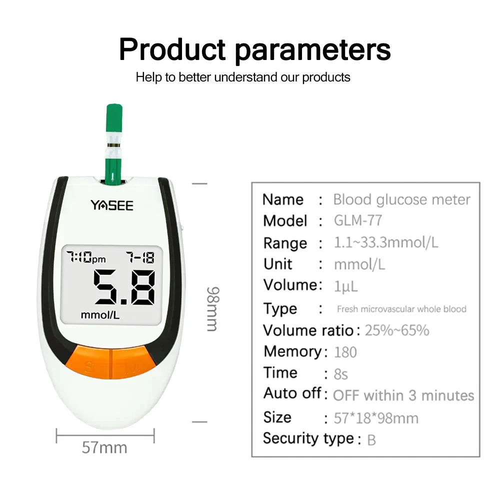 Yai метр 100 шт. Тесты полоски, прибор для измерения глюкозы в крови и ЖК-дисплей устройство для контроля кровяного Давление монитор Семья уход за здоровьем подарок, глюкометр для измерения уровня глюкозы в крови