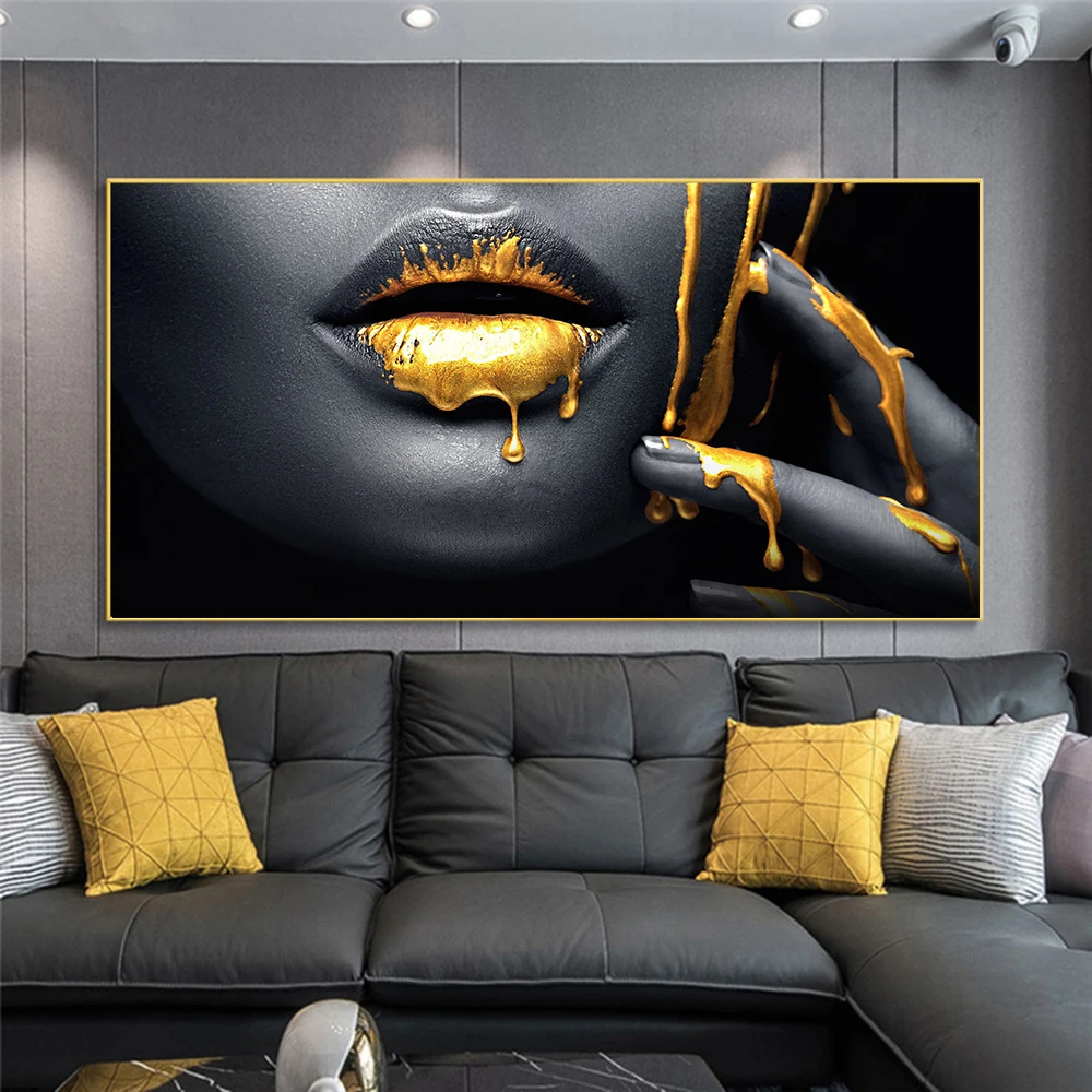 Плакаты DDHH с изображением Африканской женщины, золотые сексуальные губы, настенные картины