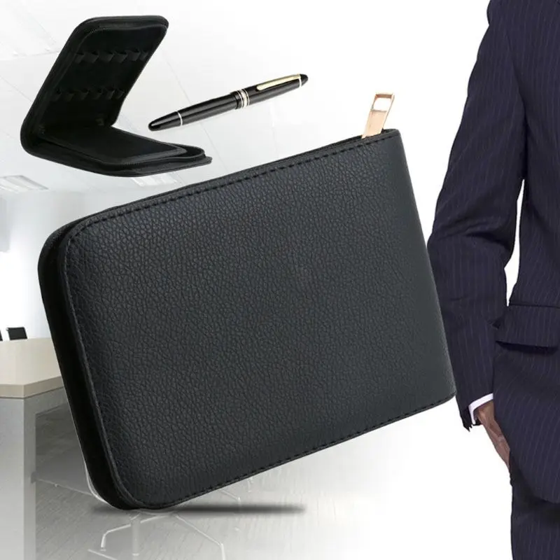 Авторучка/роликовая ручка из искусственной кожи чехол на молнии для 12 ручек черный