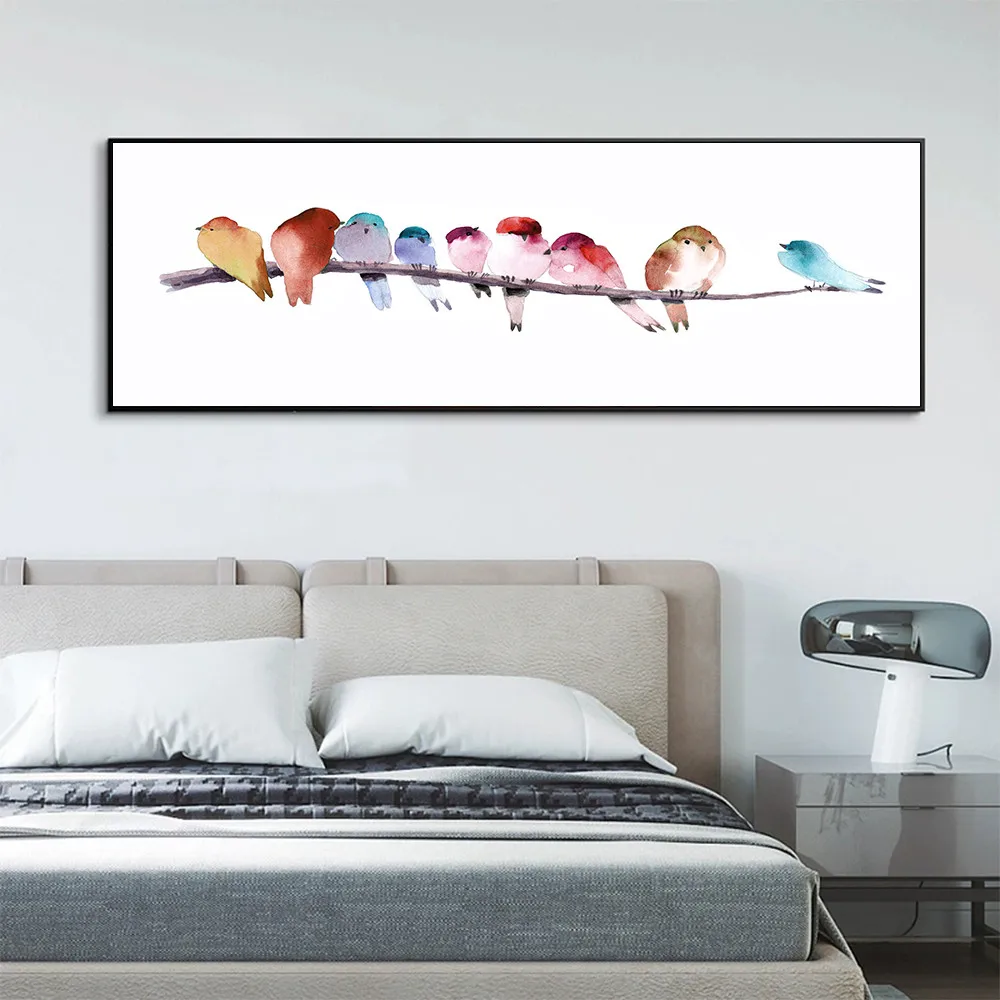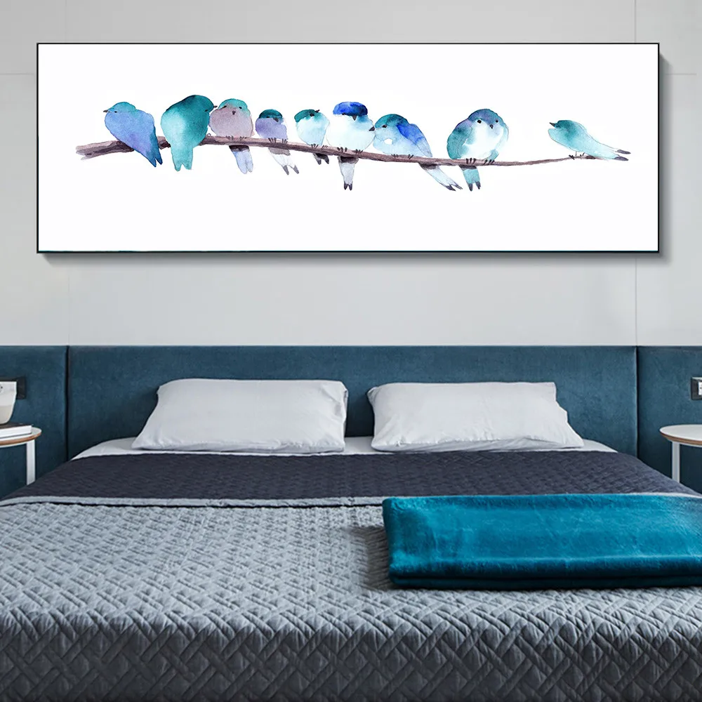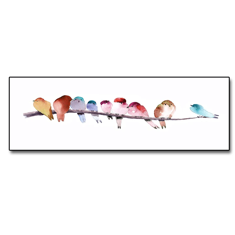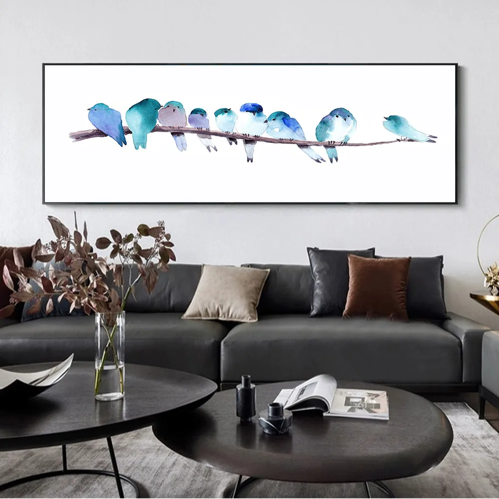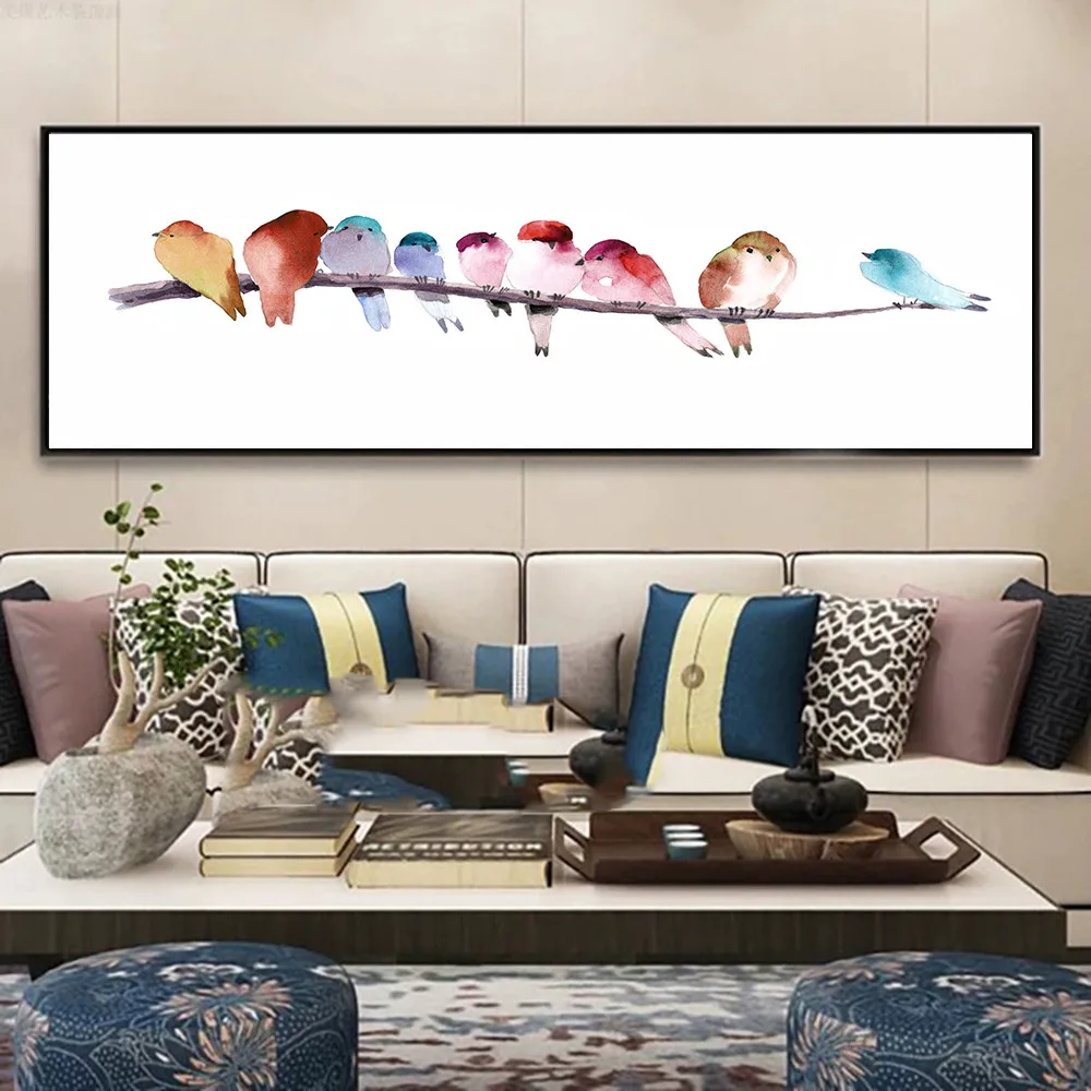 Акварельный холст, художественный принт для гостиной, девять птиц на ветке, плакаты и принты, настенное искусство, холст, живопись, украшение для дома