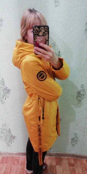 Брала куртку по акции, получилось где то 2500 руб. Была обозначена ускоренная доставка "plus", в итоге куртка шла из Китая месяц ♀️, постоянно заказываю в данном магазине, такого безобразия ещё ни разу не было, максимум 2 недели, а тут месяц!!! И так по самой куртке... Как обычно, придраться не к чему, все качественно, цвет песочный, по ощущениям не прям осенняя но и не летняя, по размеру сказать не могу, брала на беременность на осень, на 7 месяц влезла в 48 размер (обычно ношу 44) надеюсь на пару месяцев хватит до родов, потом можно талию утянуть (ещё один плюс данной модели). Курткой, качеством и моделью довольна) боялась за доставку, очень долгая, что начнётся осень и мне будет нечего одеть, так что не ведитесь на этот "plus"