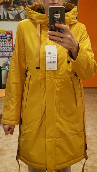 Куртка очень понравилась. Ношу размер одежды - 48, заказала р.50. Верх - идеально ( ОГ 102), низ широковат, но не критично( ОБ - 102). К качеству претензий нет, цвет красивый. Заказала хаки, но попросила продавца поменять на горчично-желтый, мою просьбу выполнили. Продавцу - спасибо! Доставка - 1.5 месяца